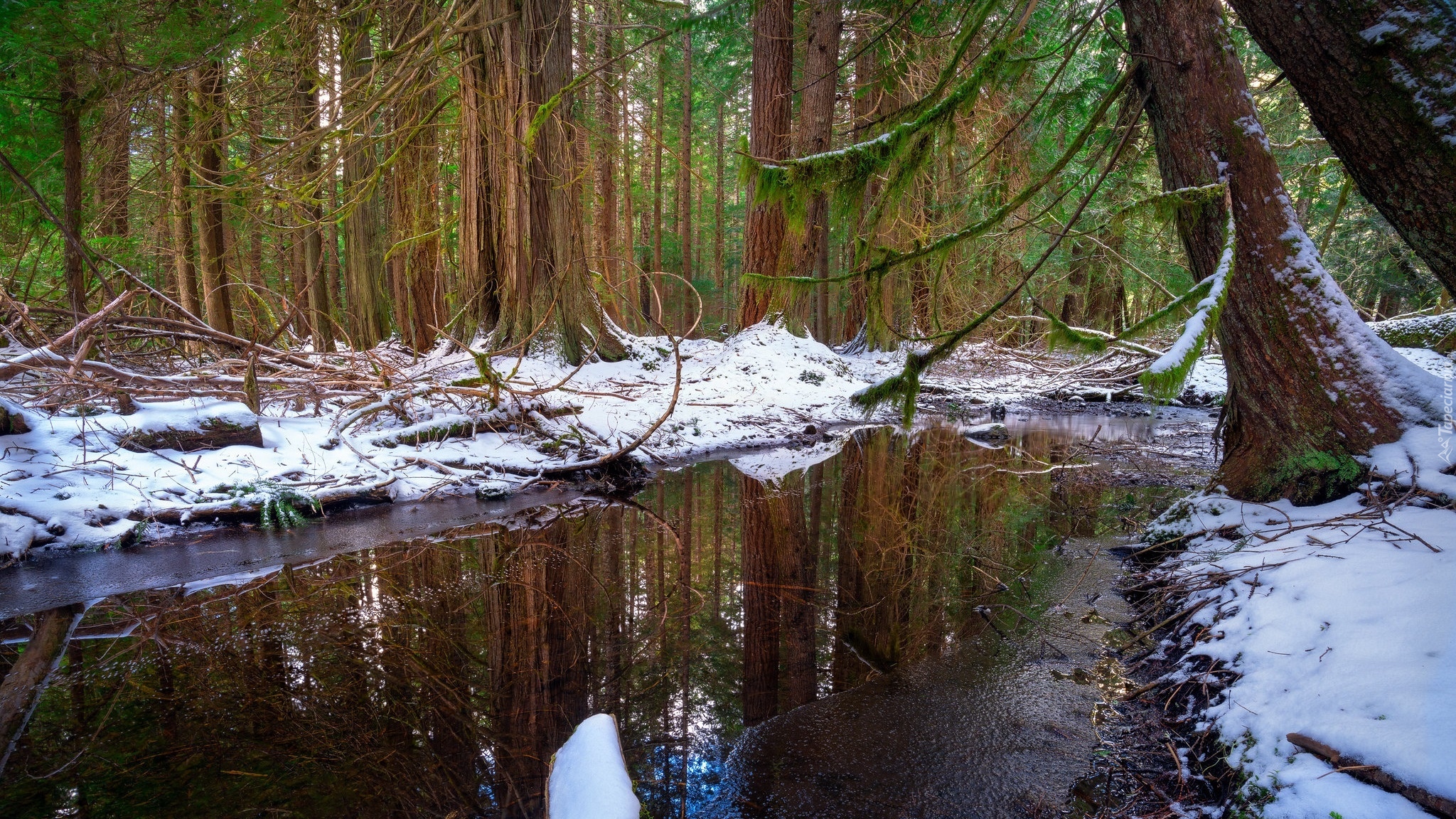 Edytor tapety: Drzewa w lesie na podmokłym terenie