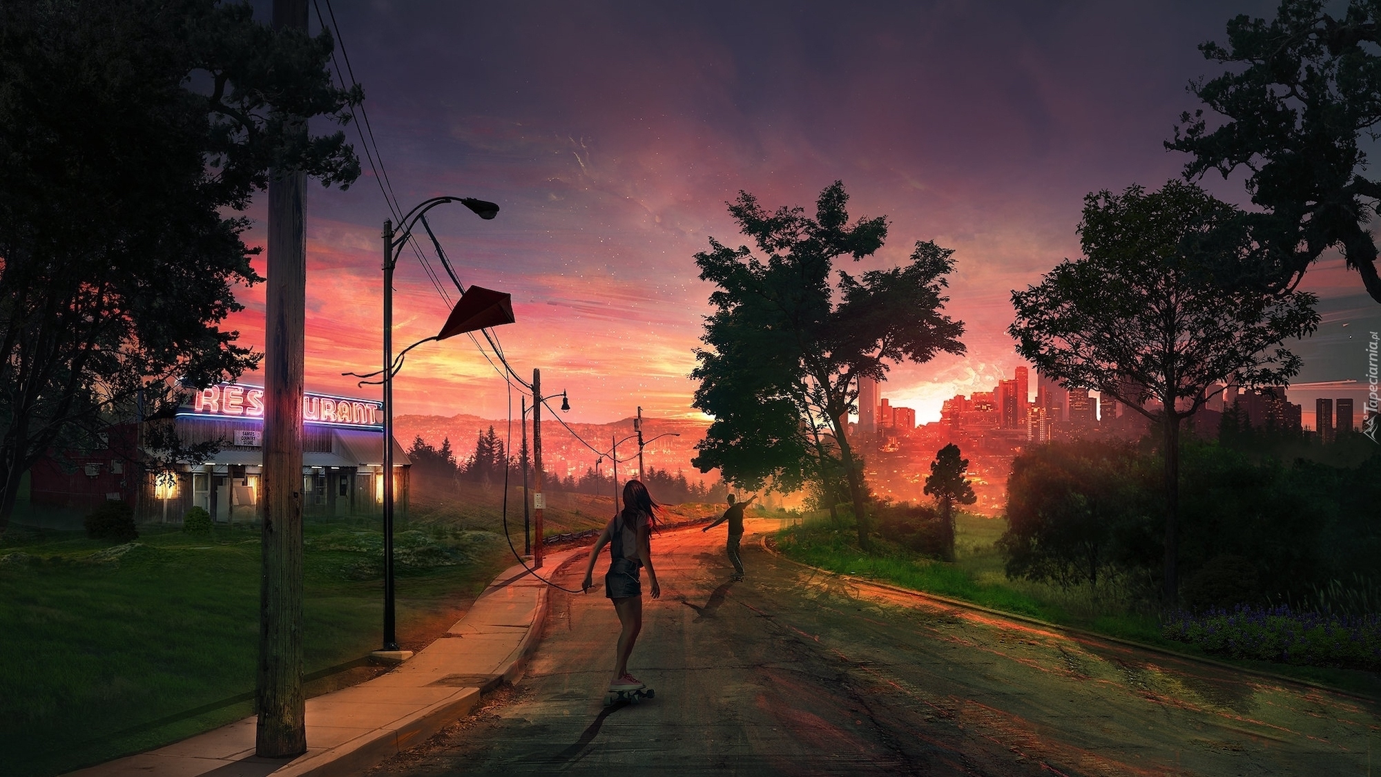 Edytor tapety: Chłopak i dziewczyna na deskorolkach