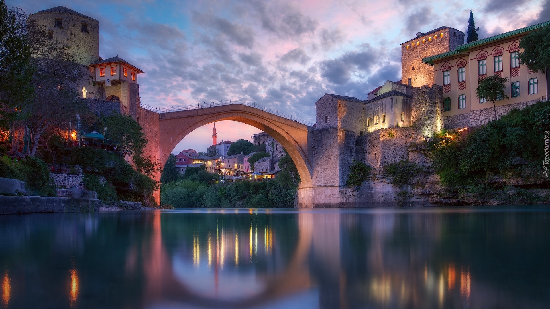 Edytor tapety: Kamienny most nad rzeką Neretwa w miasteczku Mostar