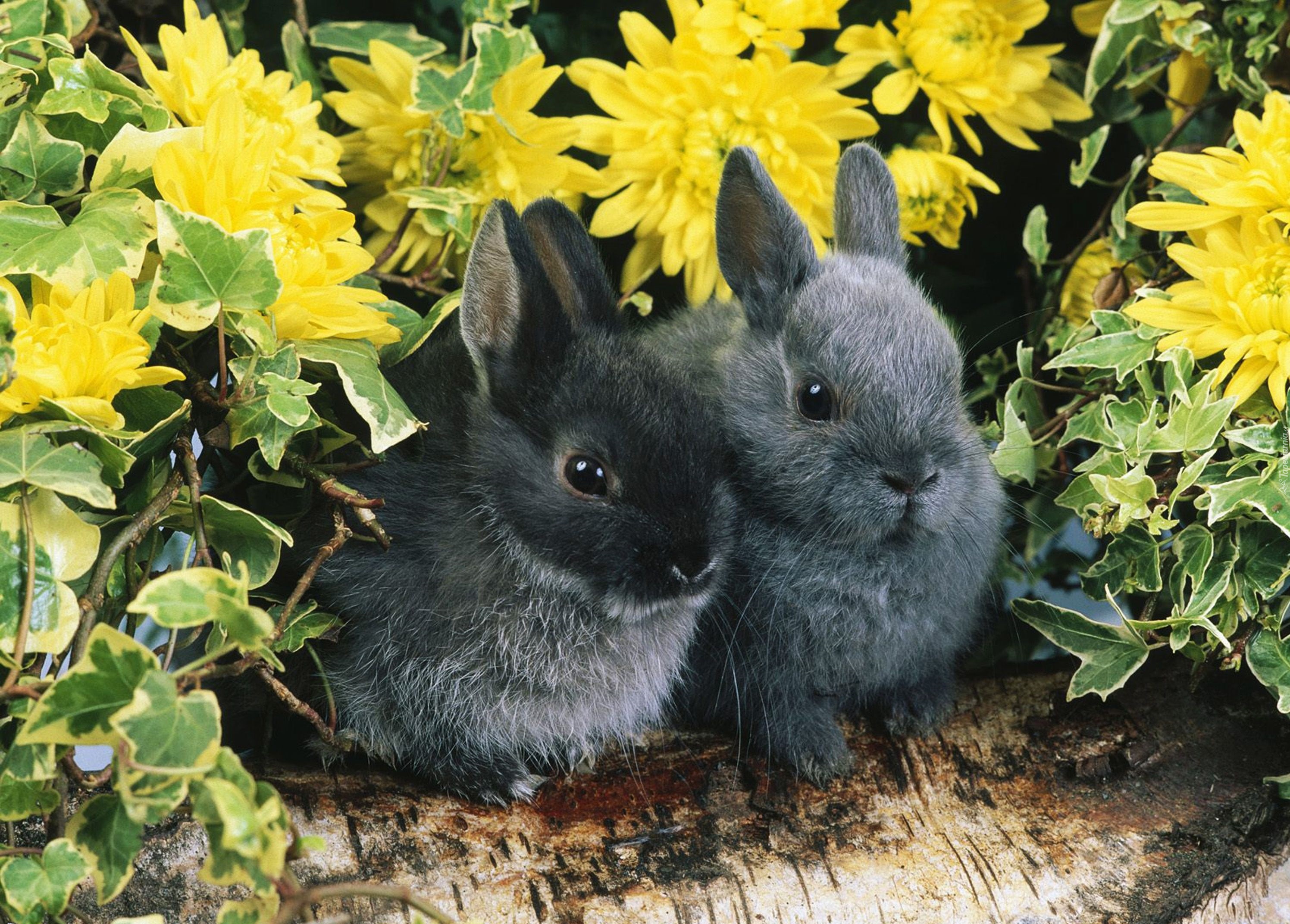 Edytor tapety: Króliki, kwiaty, pień, bluszcz