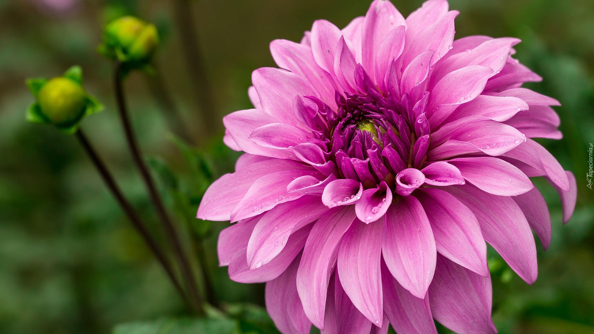 Edytor tapety: Różowa dalia z pąkami w zbliżeniu