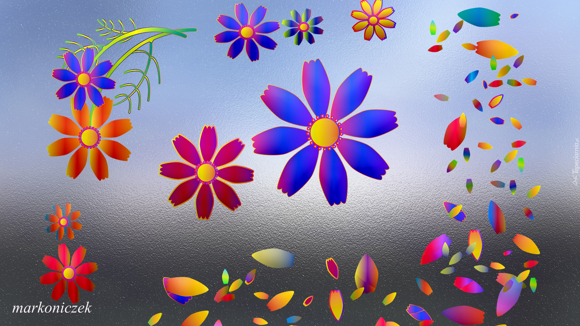 Edytor tapety: Kolorowe kwiaty i płatki w 2D