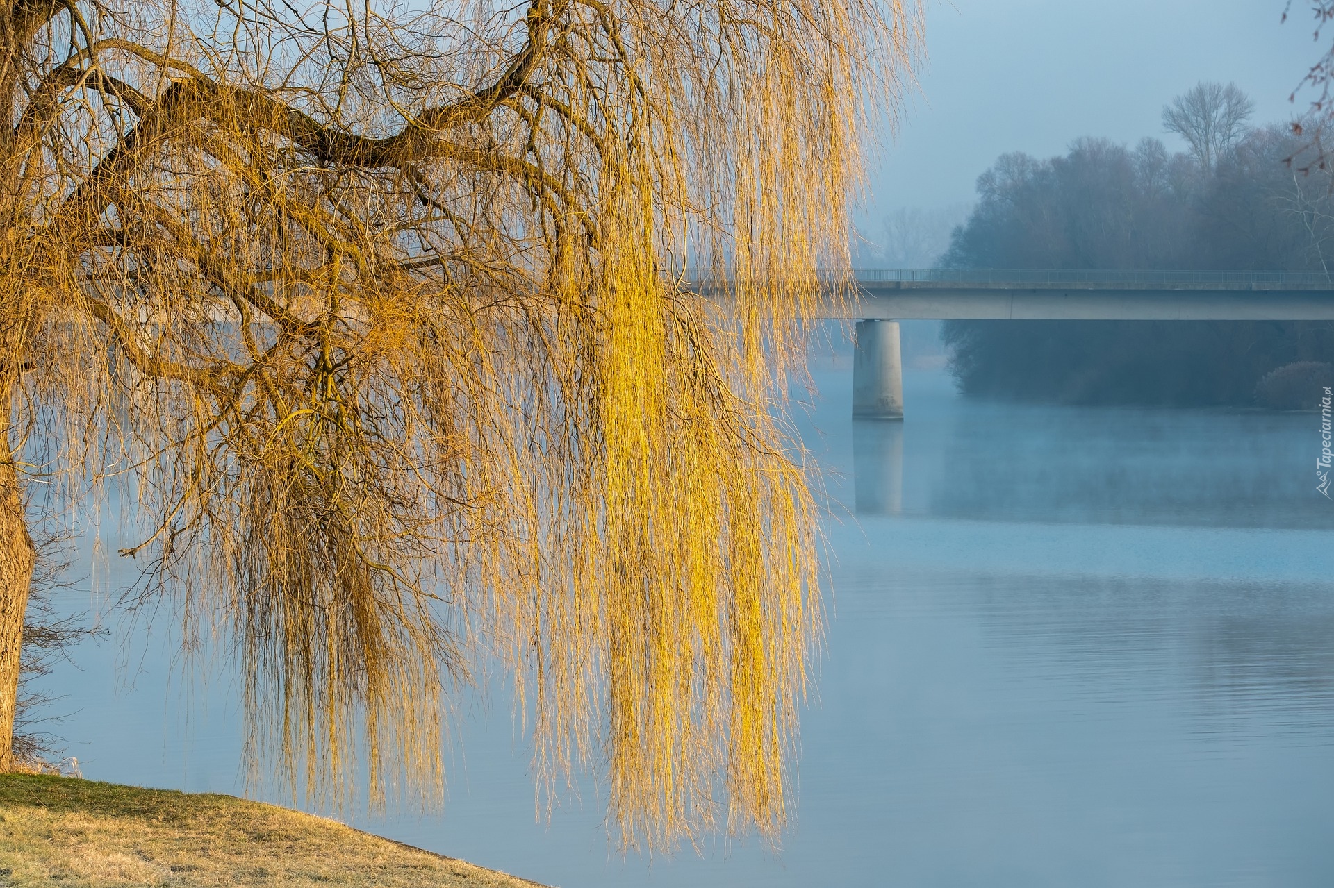 Edytor tapety: Wierzba płacząca nad brzegiem rzeki