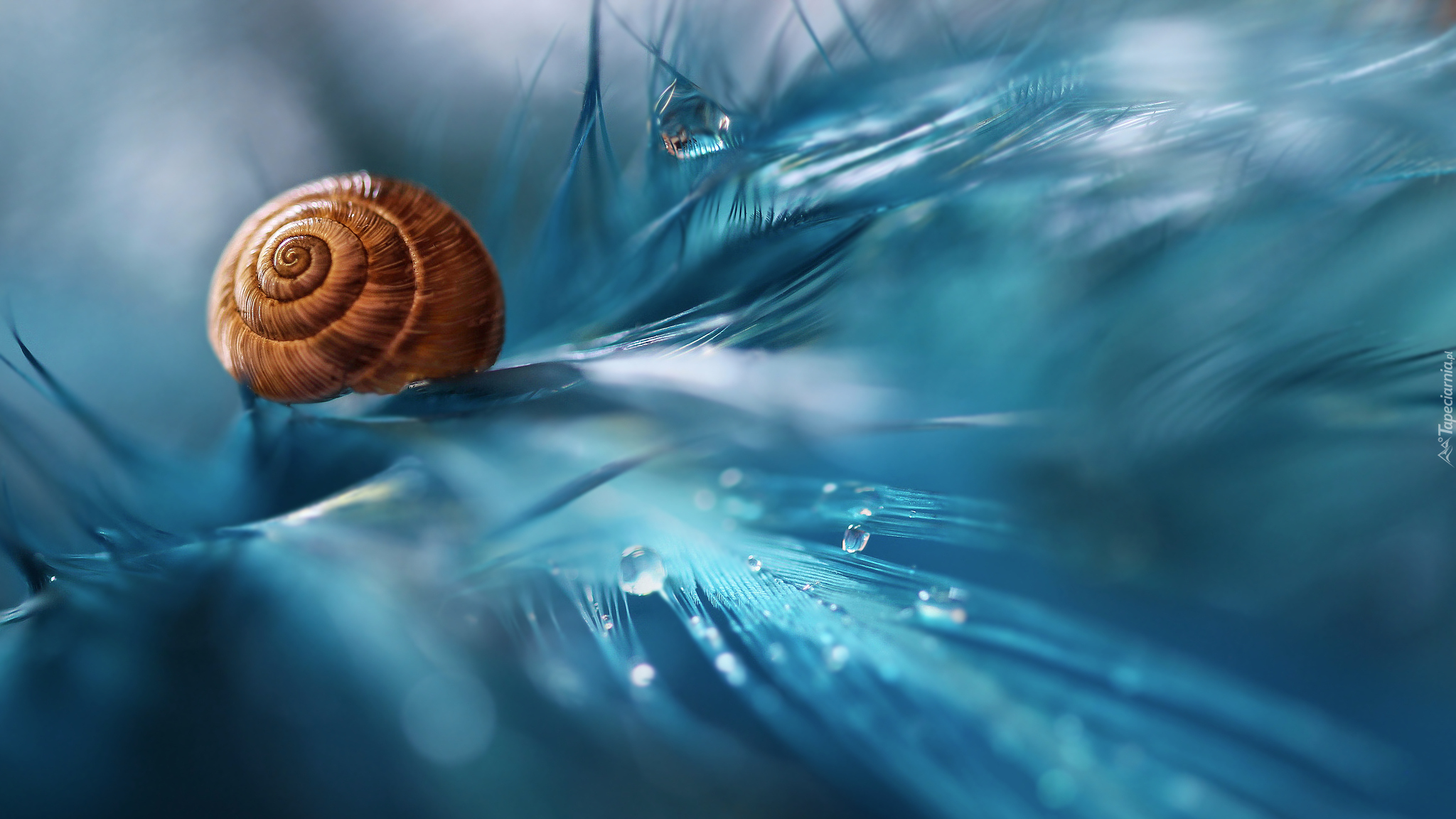 Edytor tapety: Muszla ślimaka na zroszonym piórku