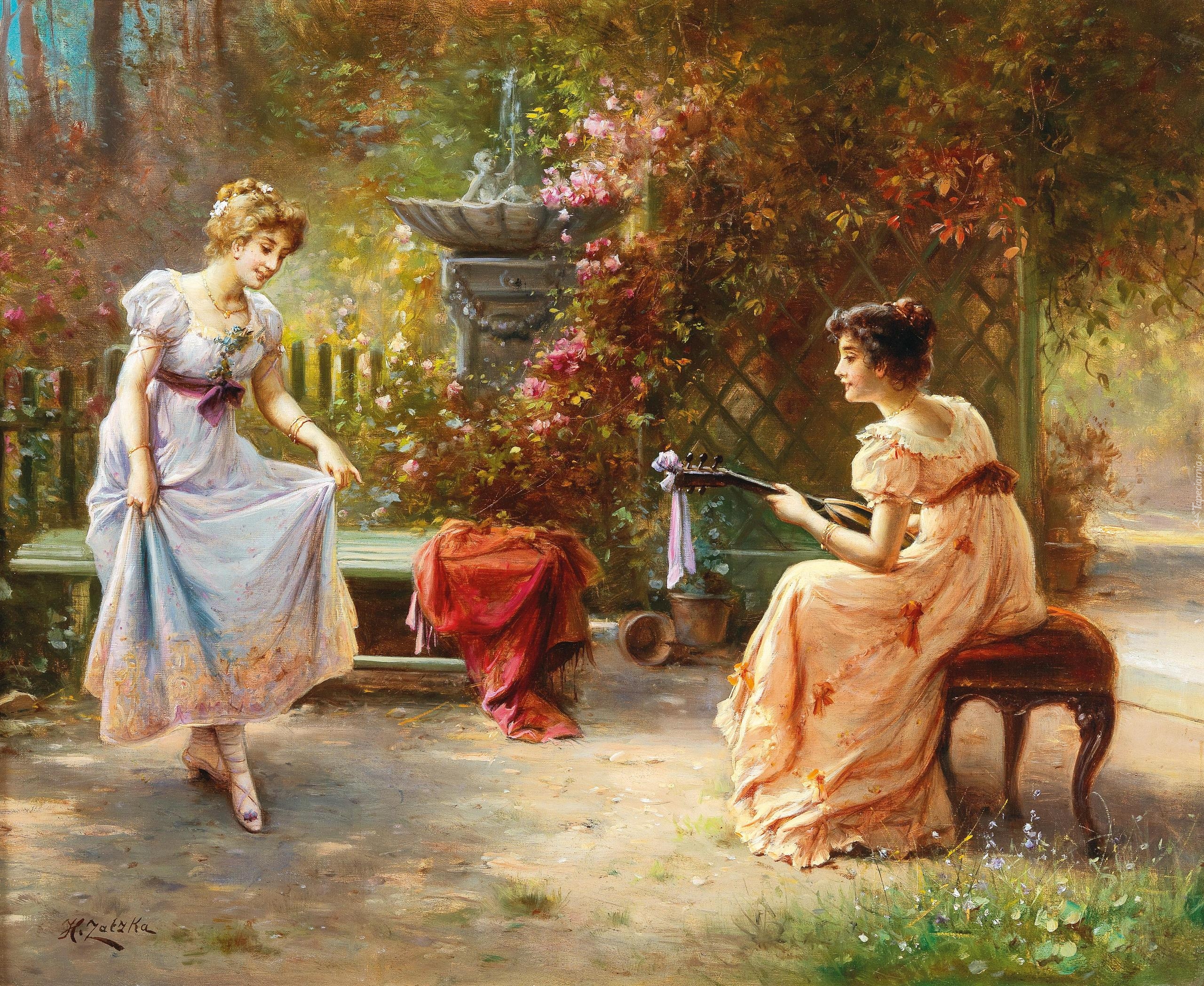 Edytor tapety: Kobiety w ogrodzie na obrazie Hansa Zatzka