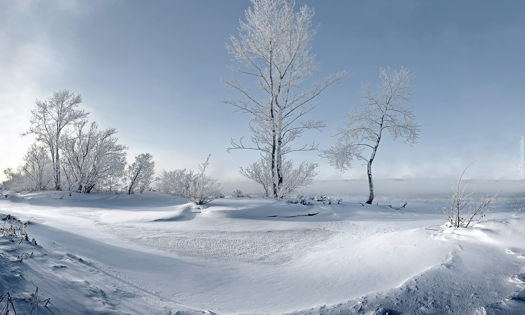 Edytor tapety: Zaśnieżone krzewy i drzewa
