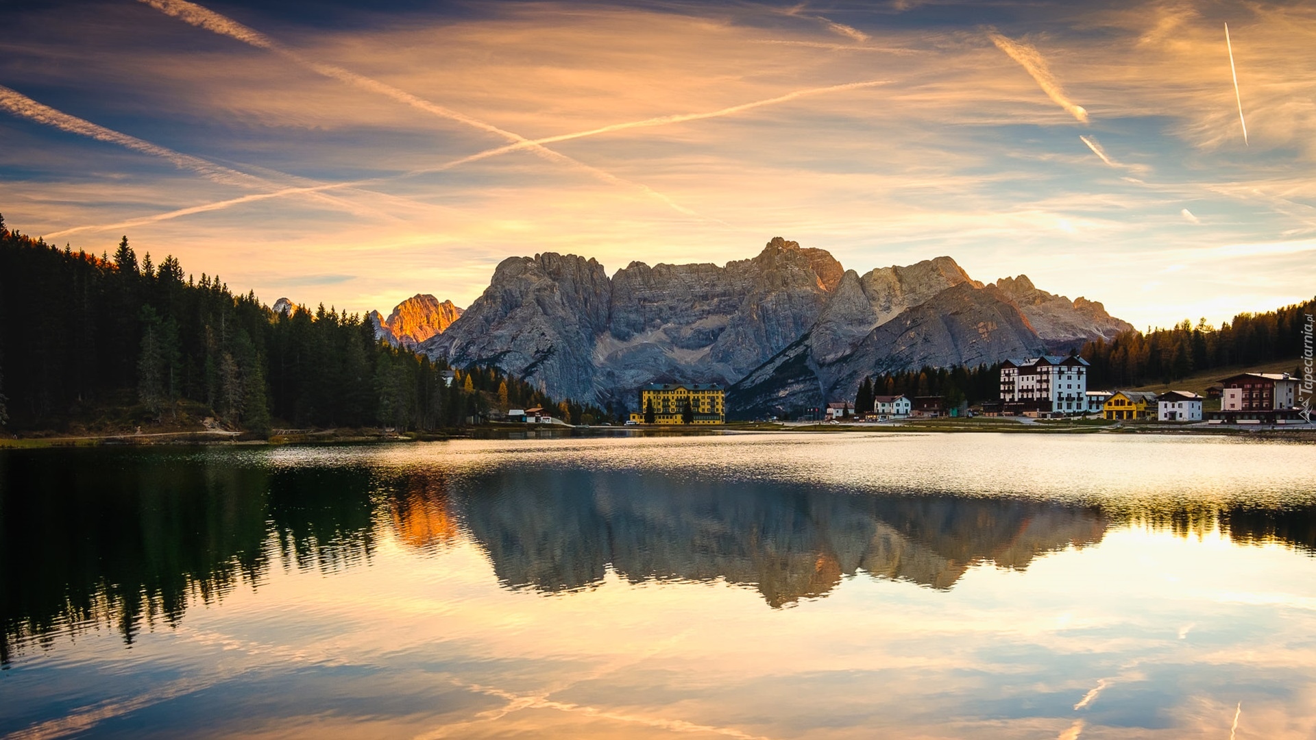 Edytor tapety: Grand Hotel Misurina i domy nad jeziorem Misurina