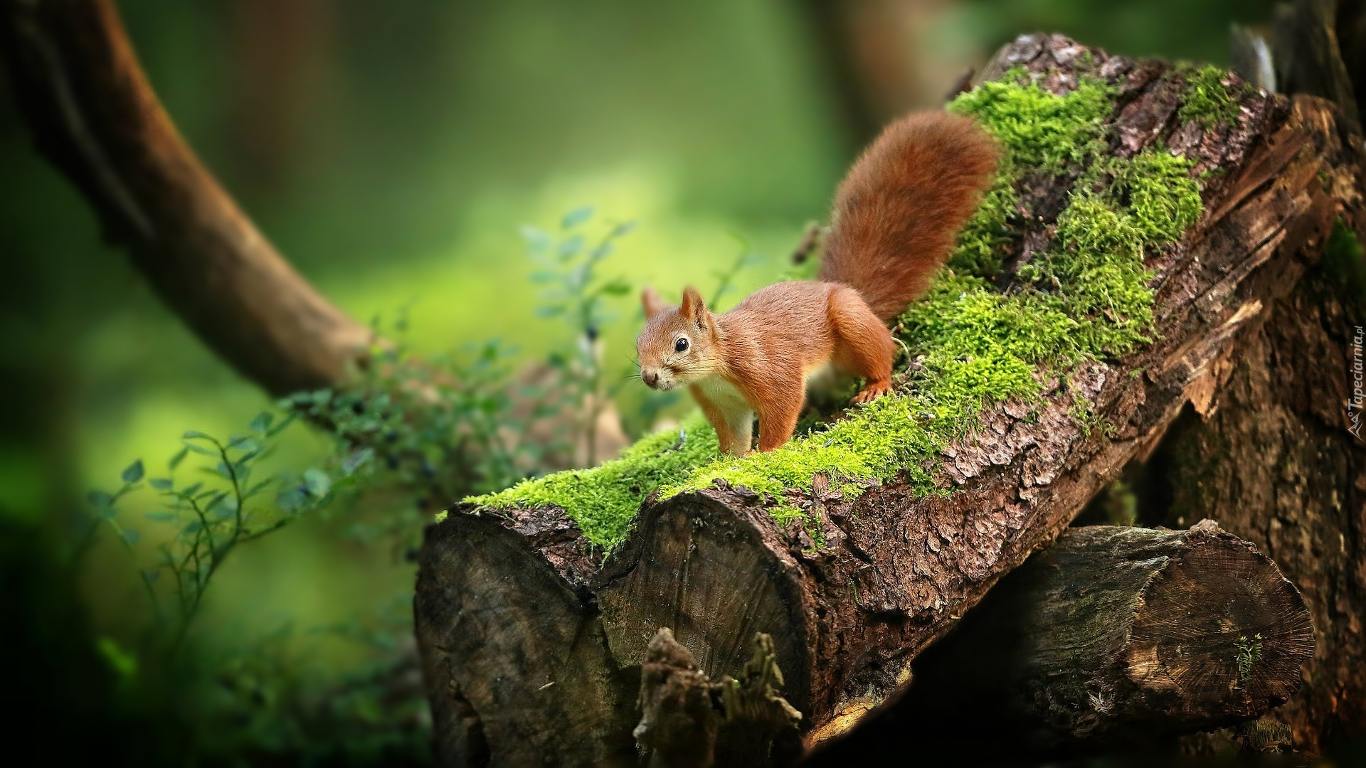 Edytor tapety: Wiewiórka na omszonym konarze