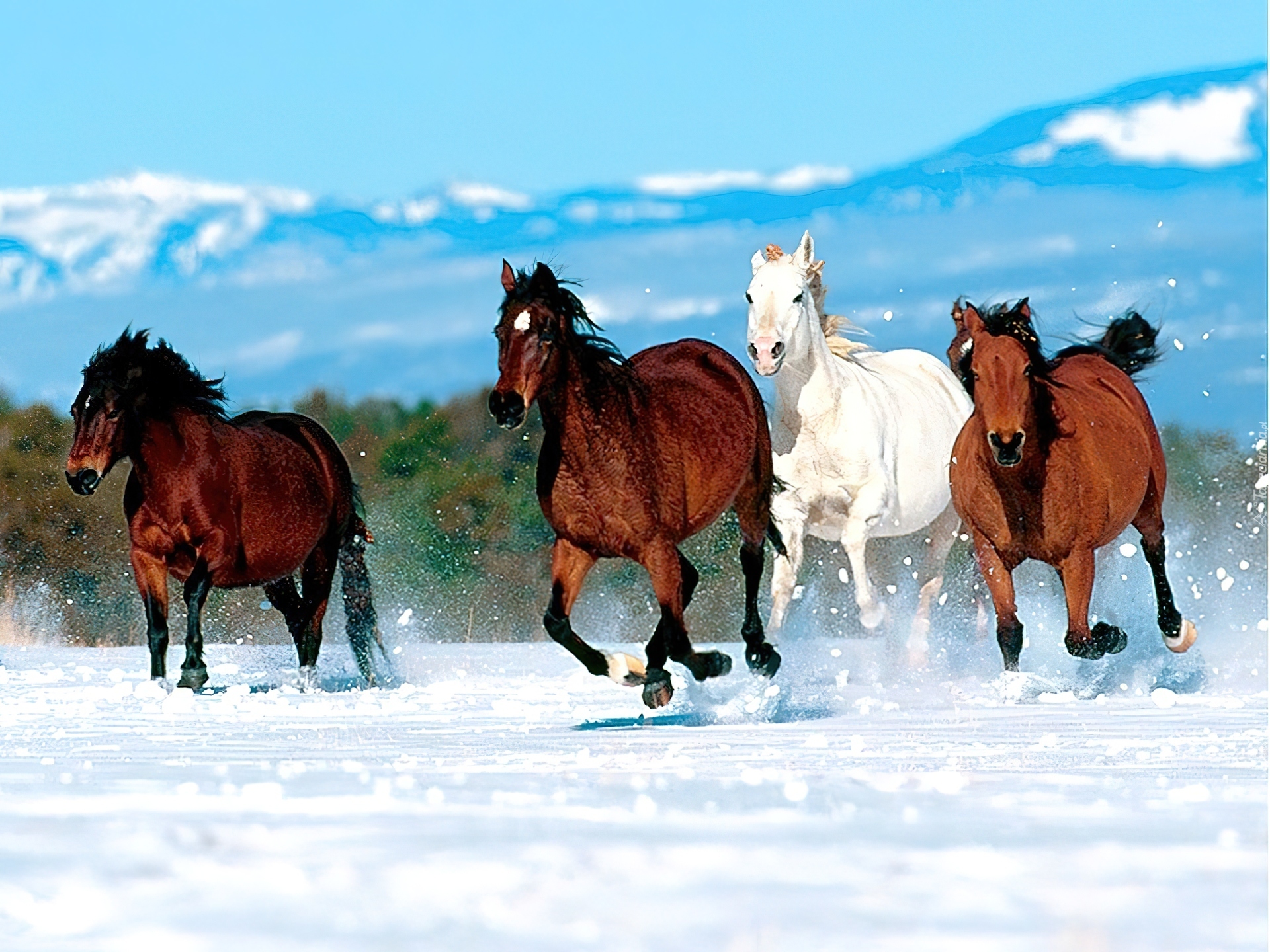 Edytor tapety: Konie, tabun, góry