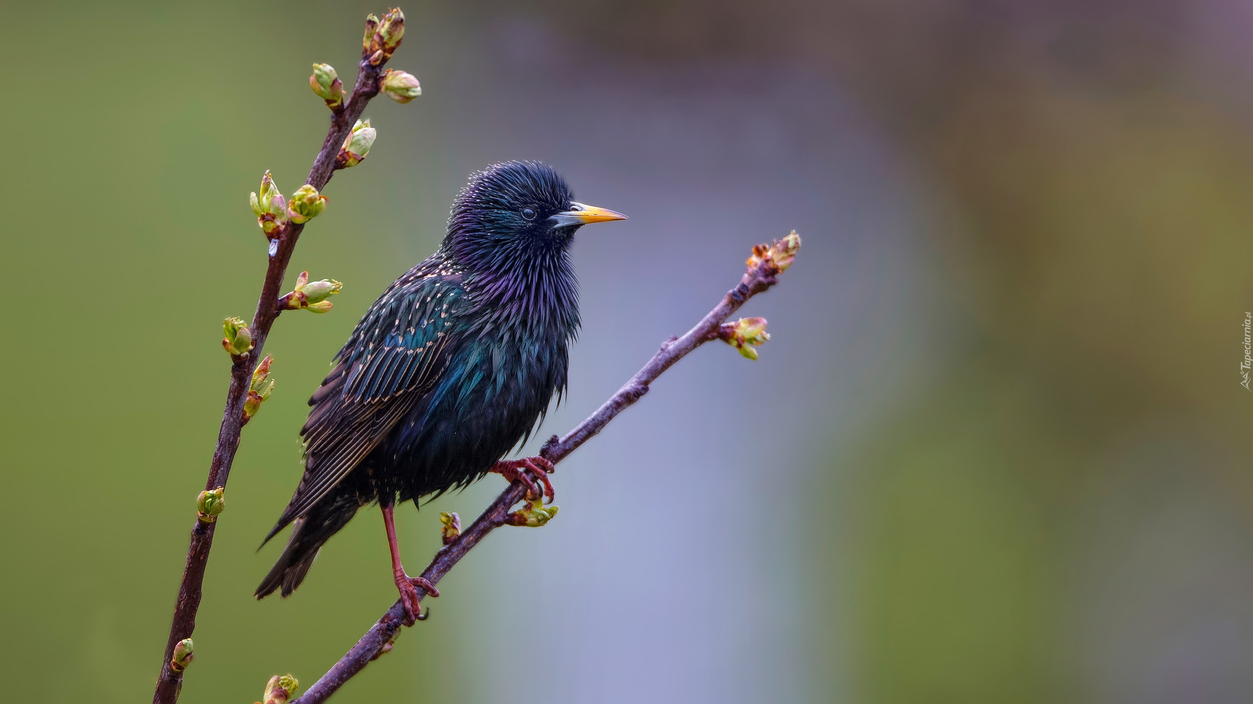 Edytor tapety: Szpak zwyczajny na gałązce