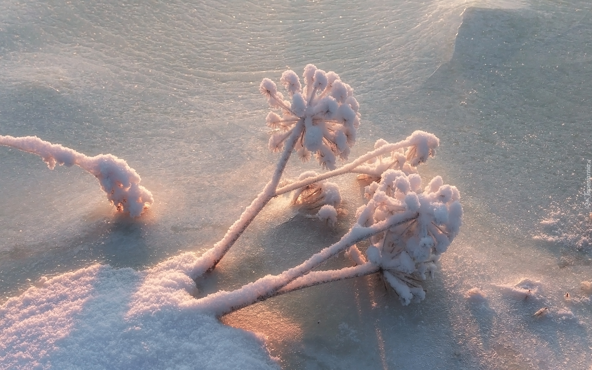 Edytor tapety: Oszroniona roślinka w śniegu