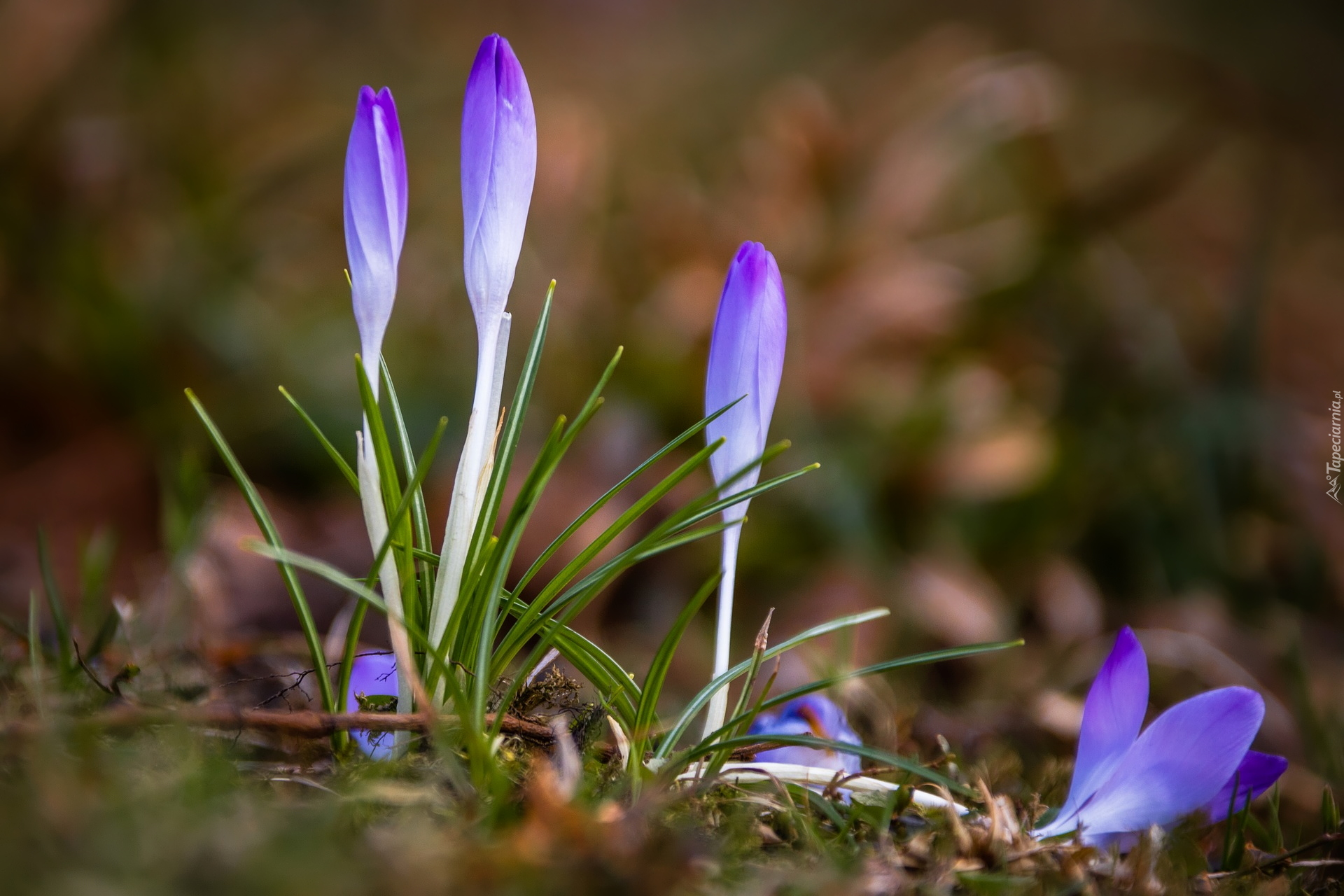 Edytor tapety: Pąki fioletowych krokusów na rozmytym tle