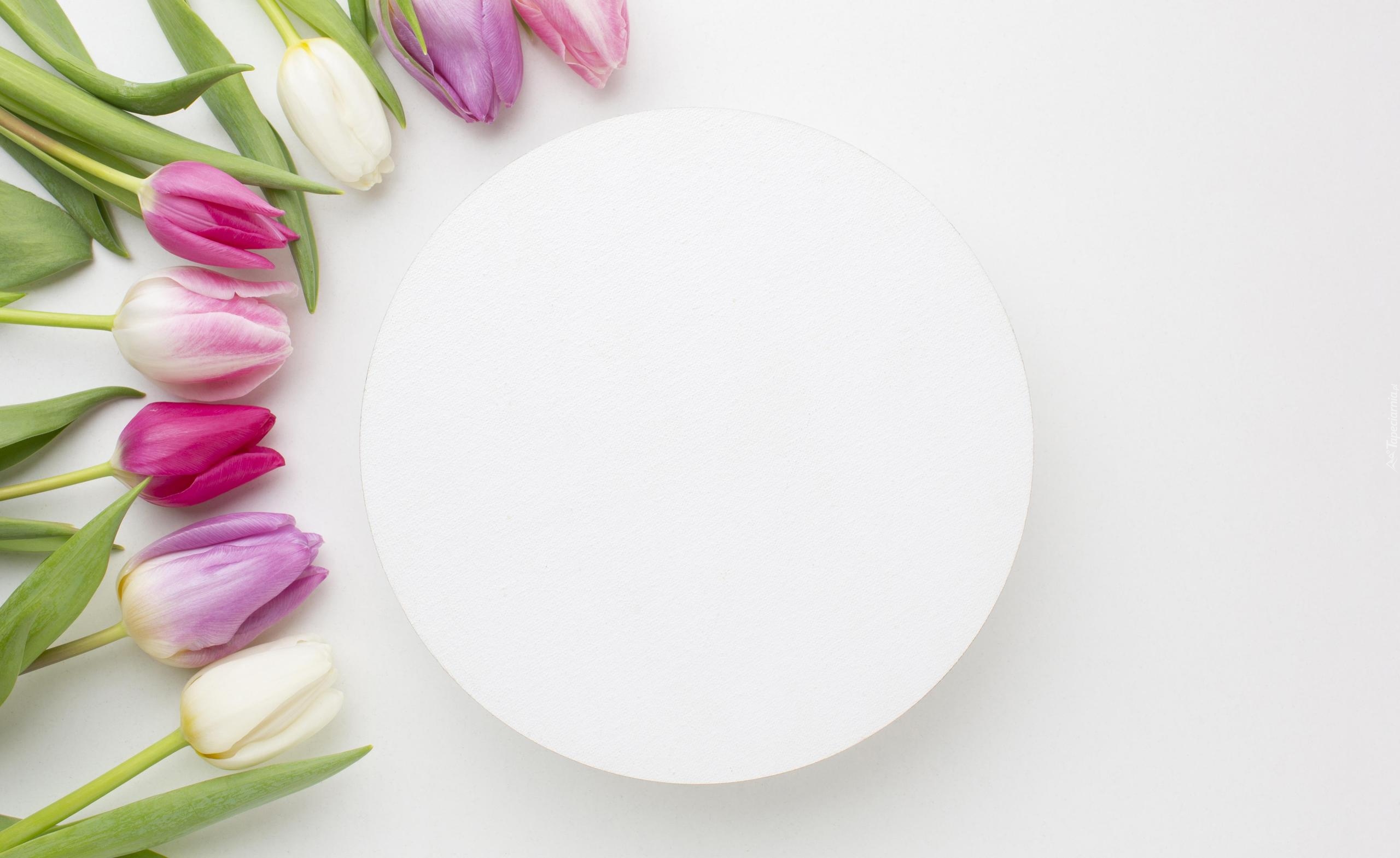 Edytor tapety: Kolorowe tulipany obok białego koła