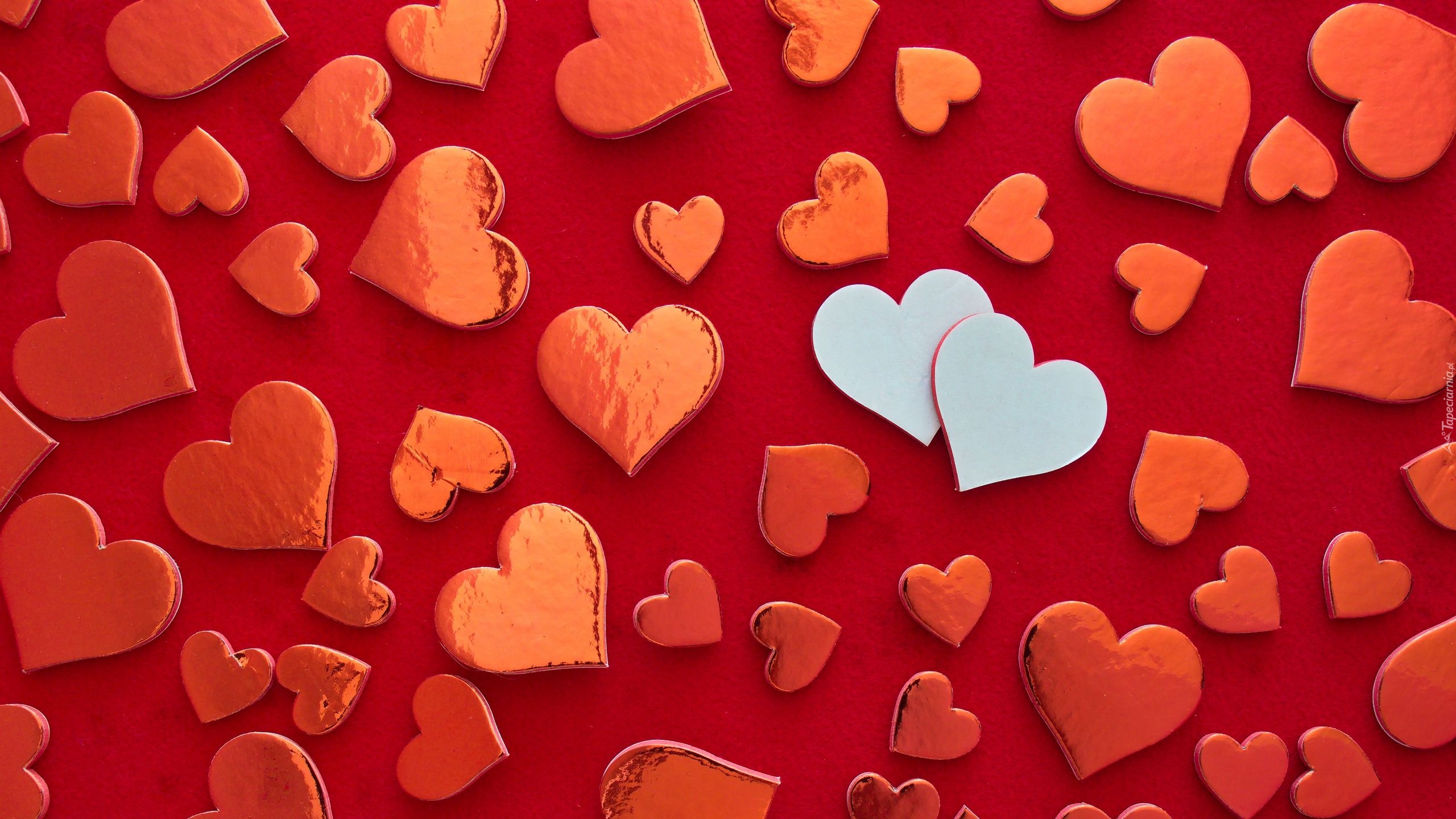 Edytor tapety: Dwa białe serca wśród czerwonych serduszek