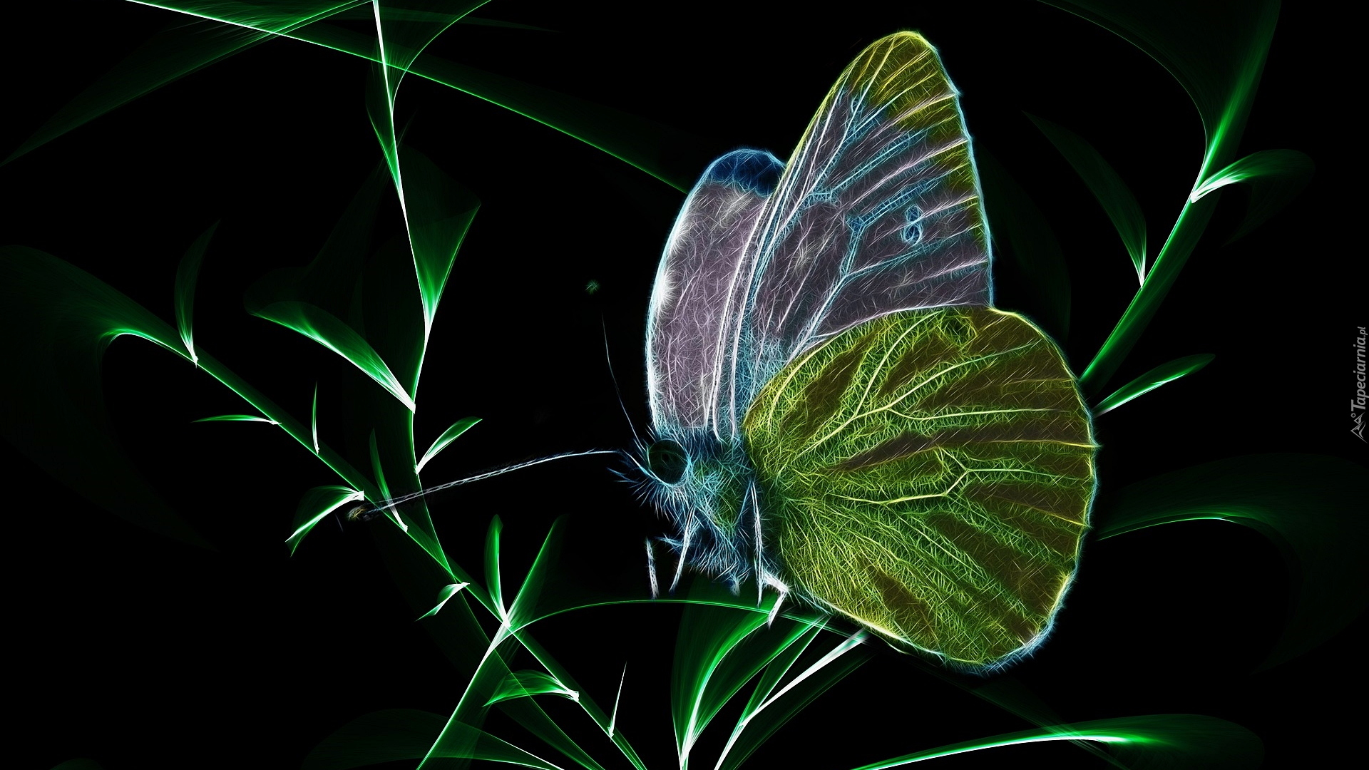 Edytor tapety: Fractalius motyla na źdźbłach trawy