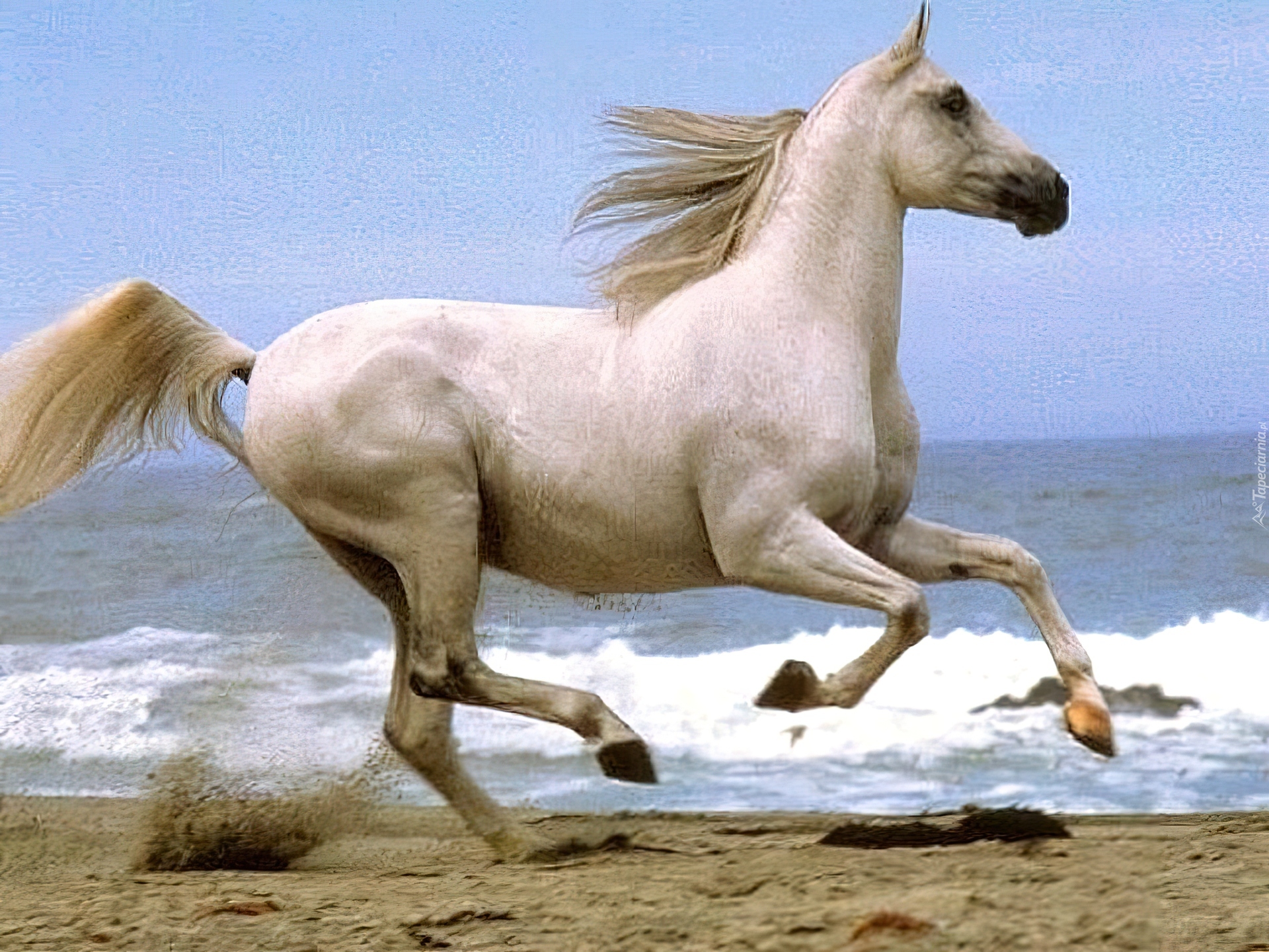 Edytor tapety: Koń, biały, morze, plaża