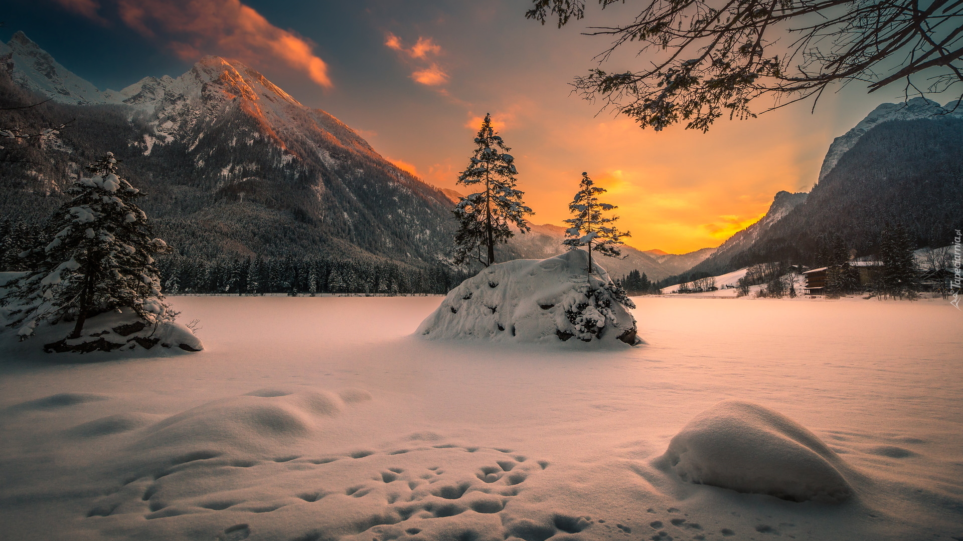 Edytor tapety: Zaśnieżone jezioro Hintersee