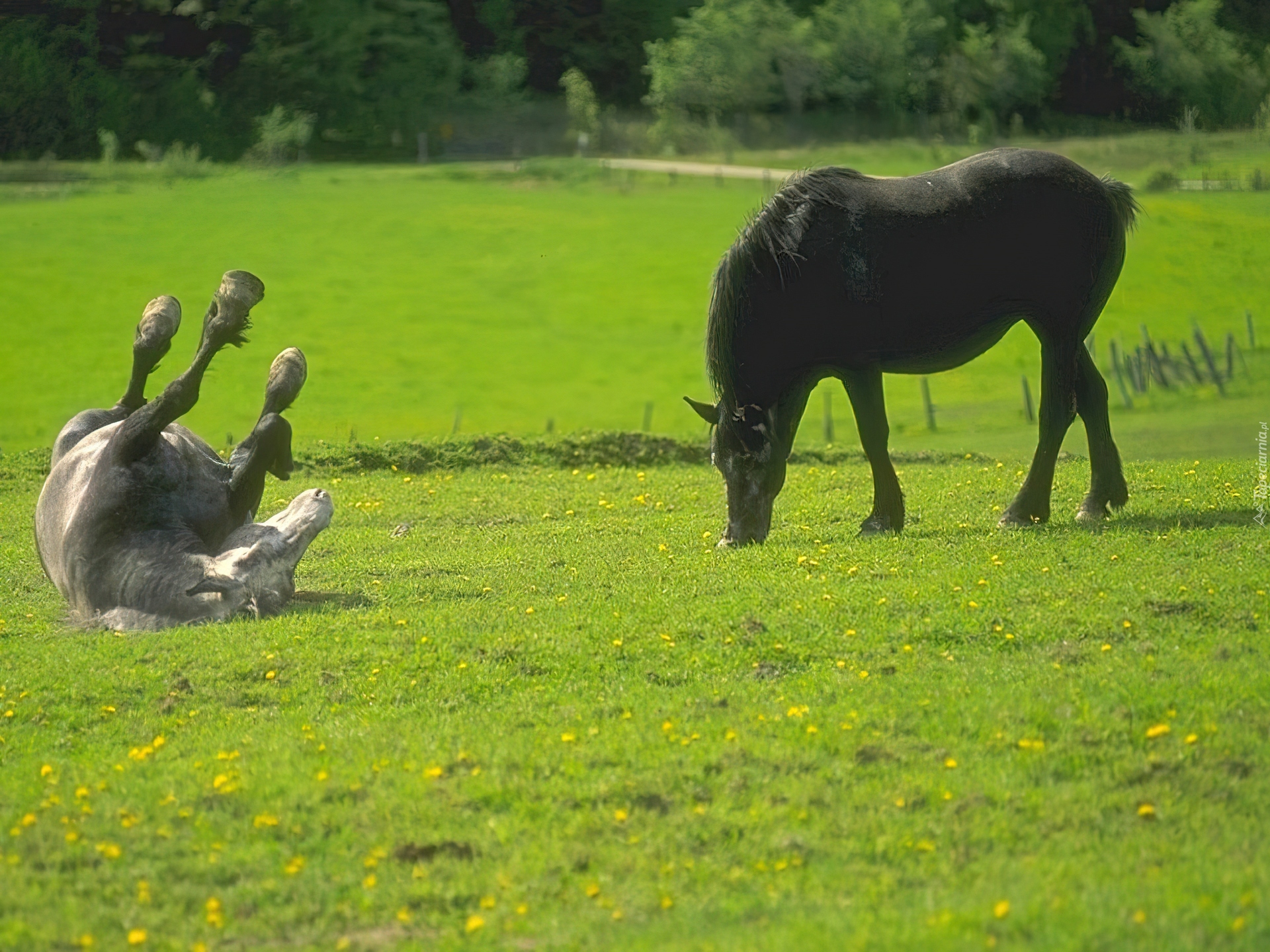 Edytor tapety: Koń, konie, łąka, czarny, biały