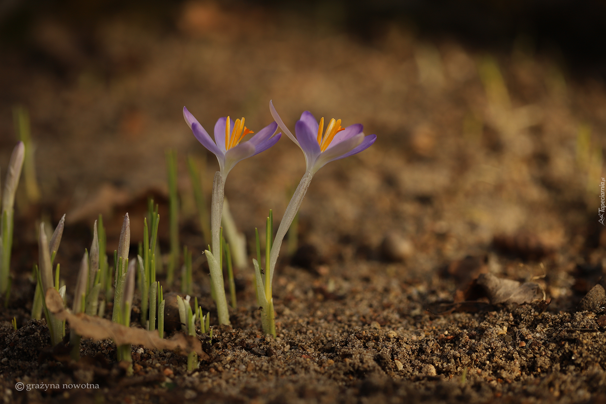 Edytor tapety: Dwa rozkwitnięte fioletowe krokusy