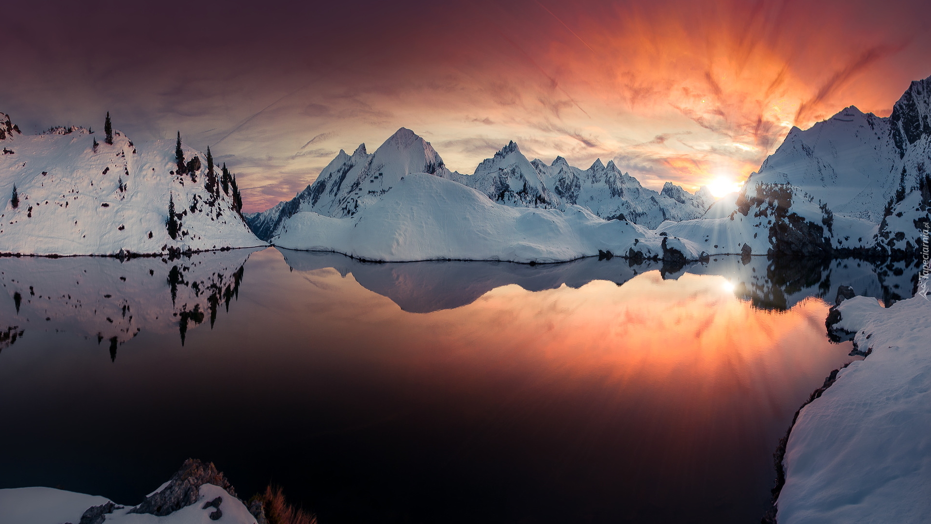 Edytor tapety: Zachód słońca nad jeziorem Grunwaldsee