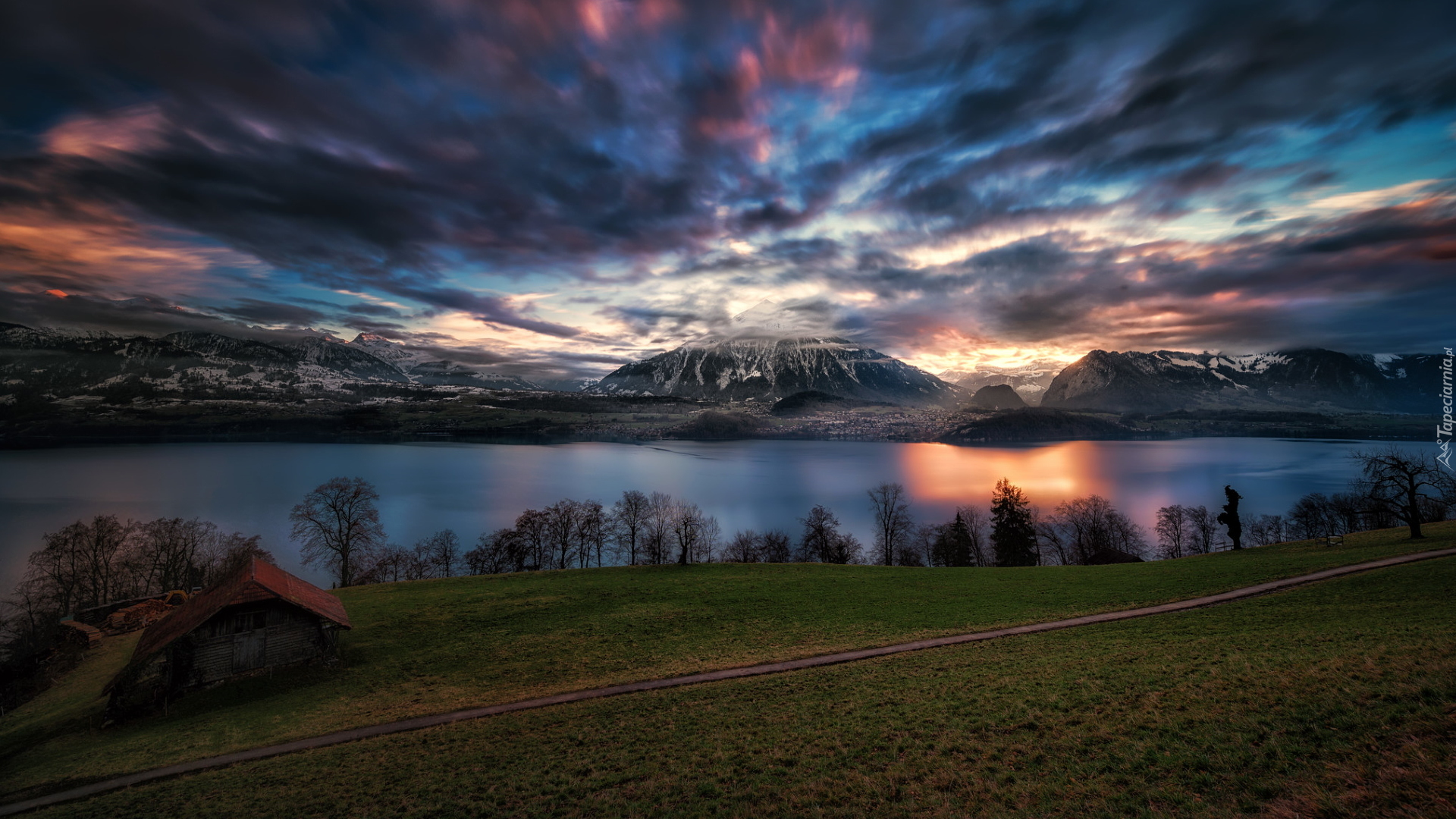 Edytor tapety: Ciemne chmury nad jeziorem Thunersee