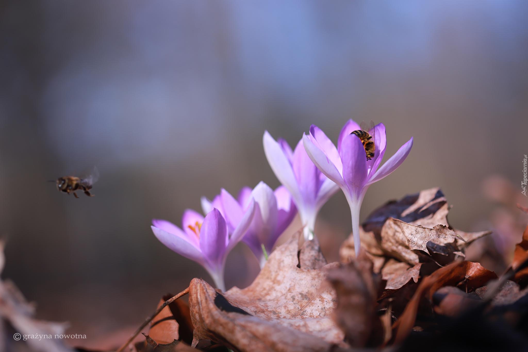 Edytor tapety: Pszczoła na fioletowym krokusie