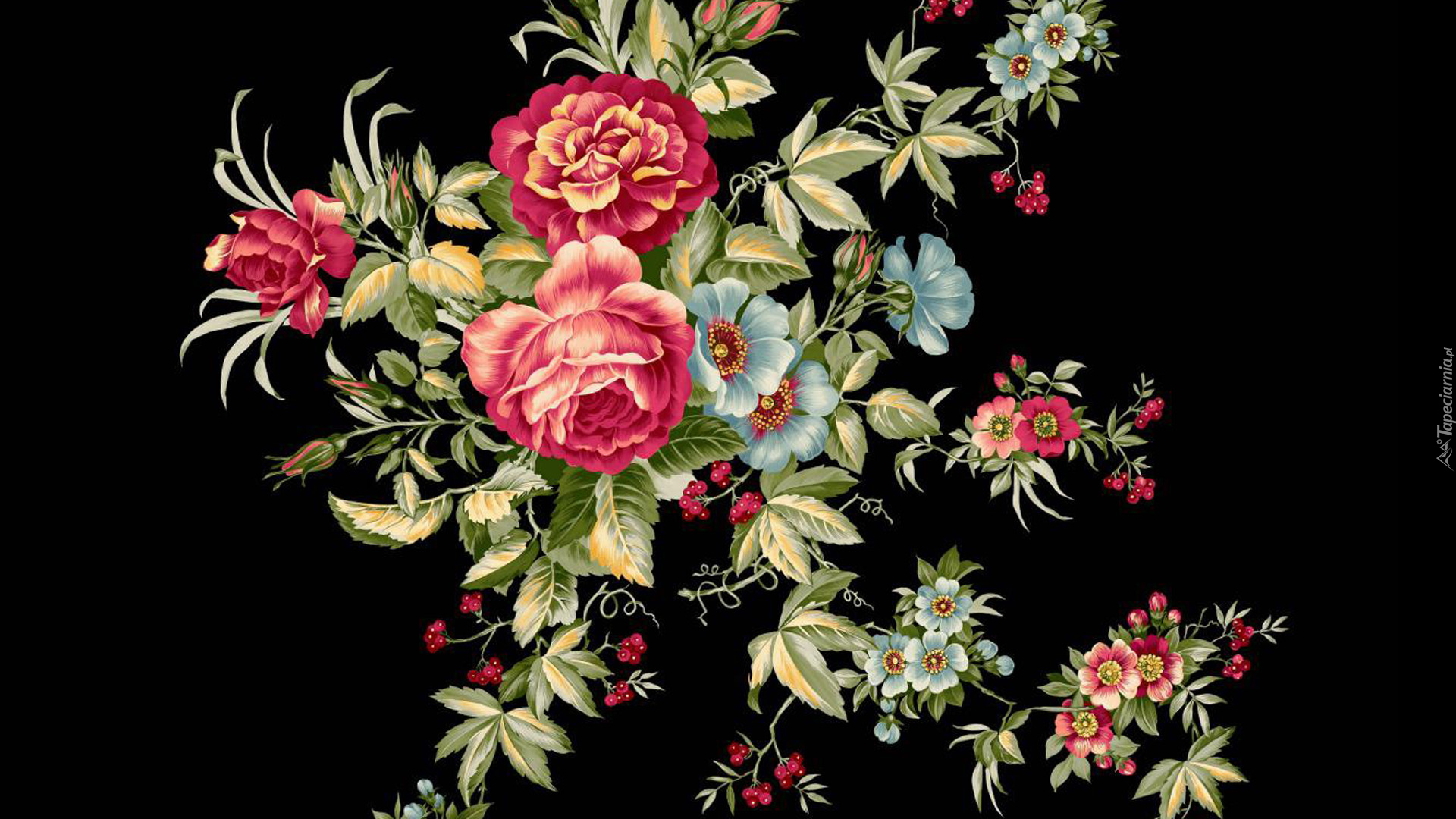 Edytor tapety: Kolorowe kwiaty na czarnym tle w grafice