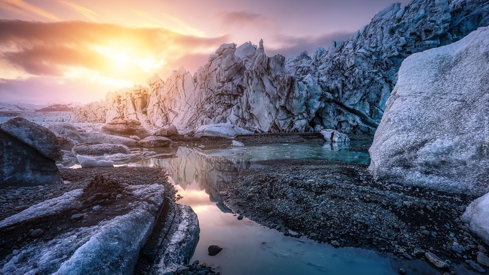 Edytor tapety: Jezioro Jokulsarlon wśród skał w Islandii