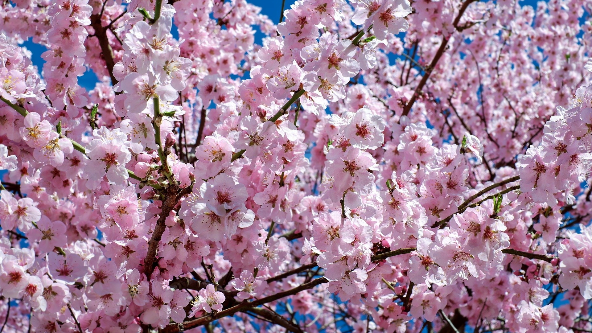 Edytor tapety: Gałązki kwitnącej wiśni na tle nieba