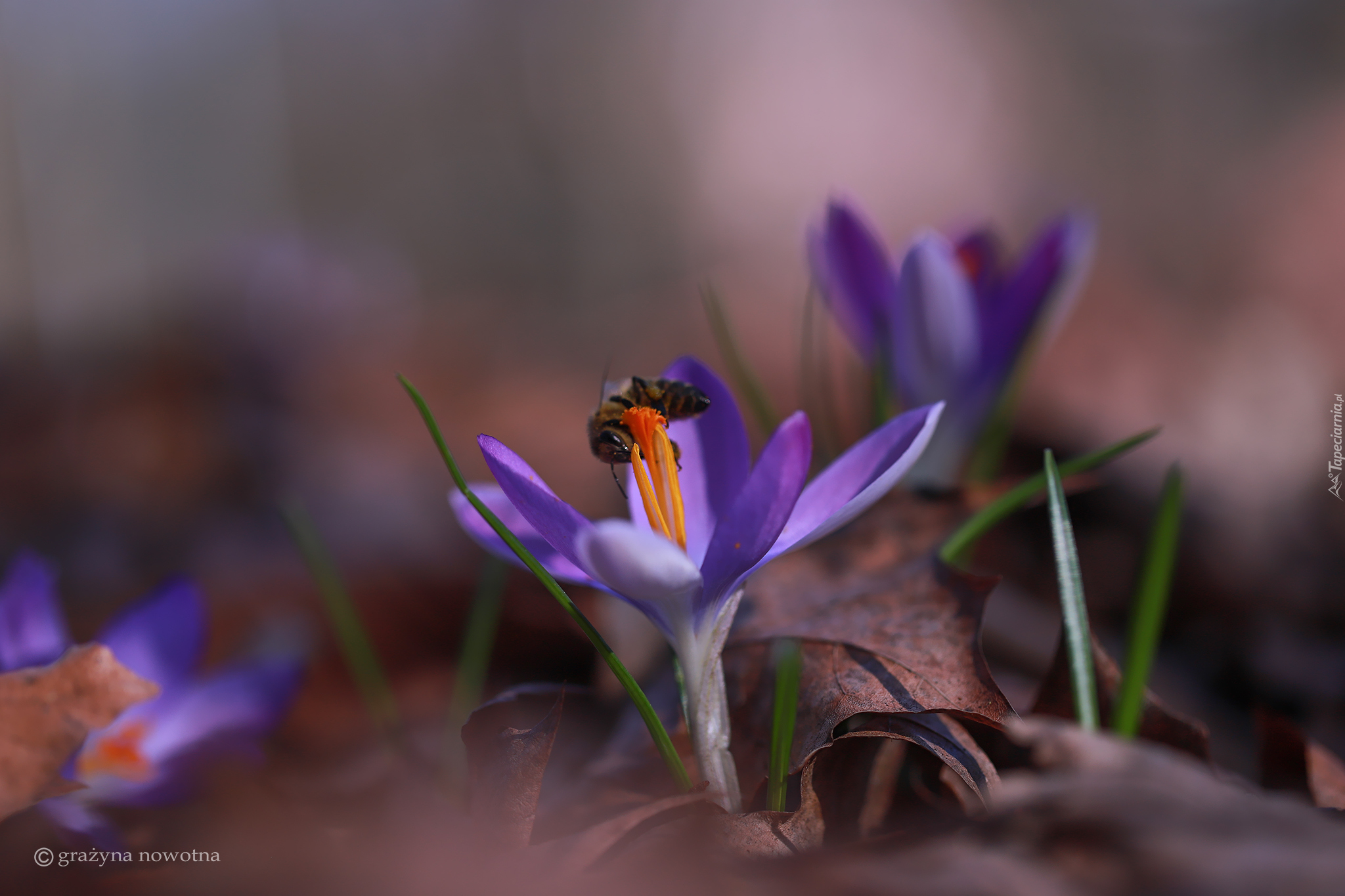 Edytor tapety: Pszczoła na krokusie fioletowym