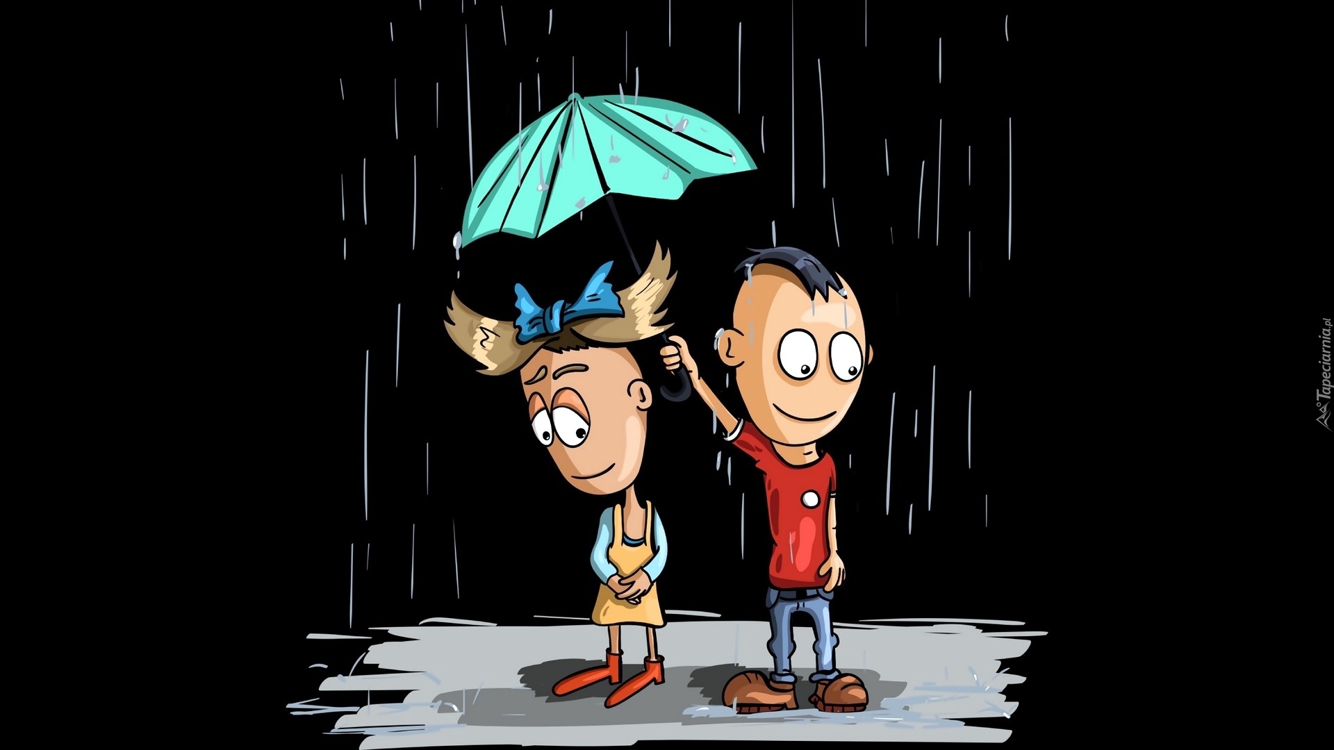 Edytor tapety: Chłopak z parasolką osłaniający dziewczynę przed deszczem