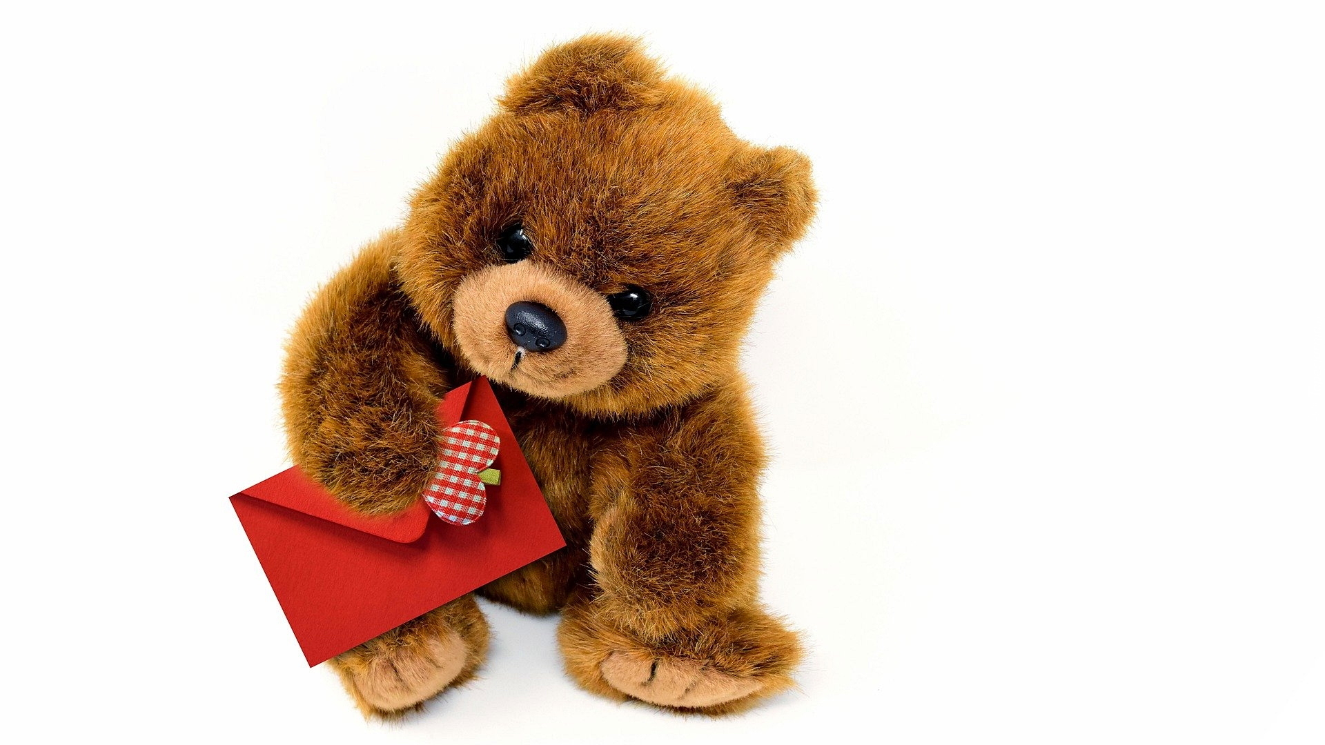Edytor tapety: Pluszowy miś z kopertą na białym tle