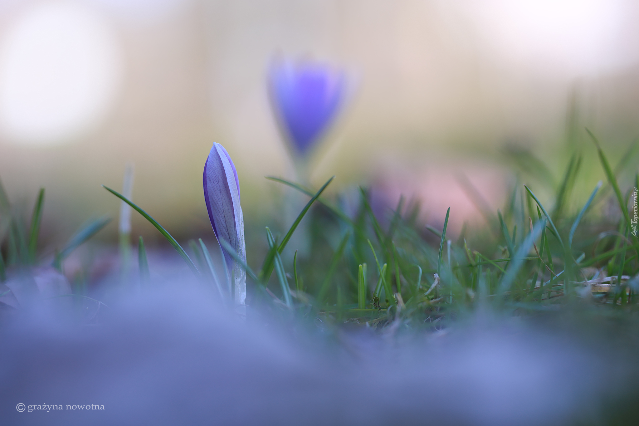 Edytor tapety: Pąk krokusa w trawie