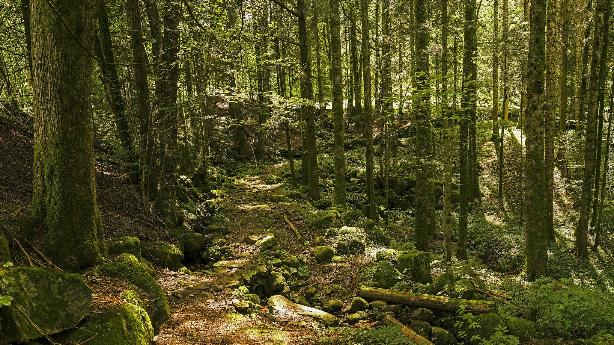 Edytor tapety: Omszone kamienie i drzewa