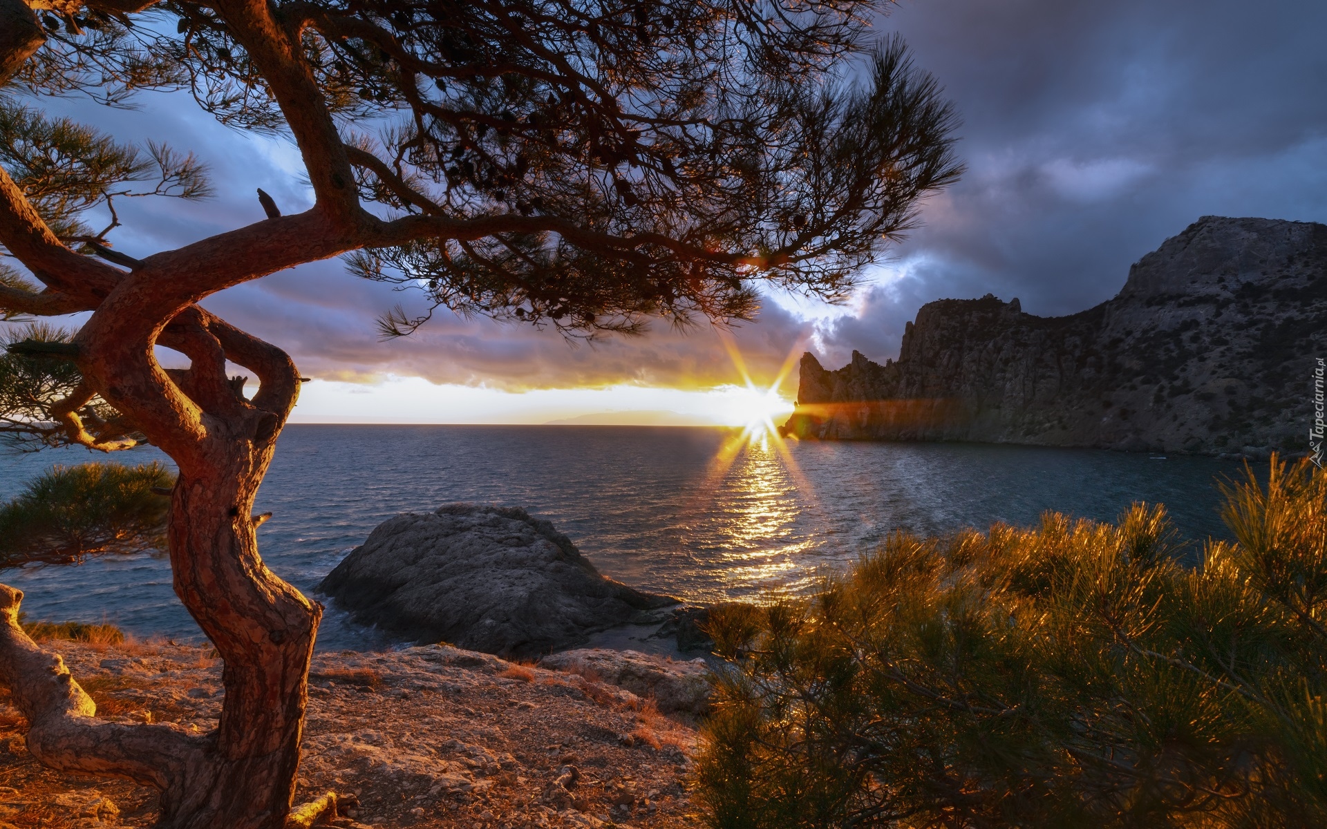 Edytor tapety: Sosna w promieniach słońca nad Morzem Czarnym