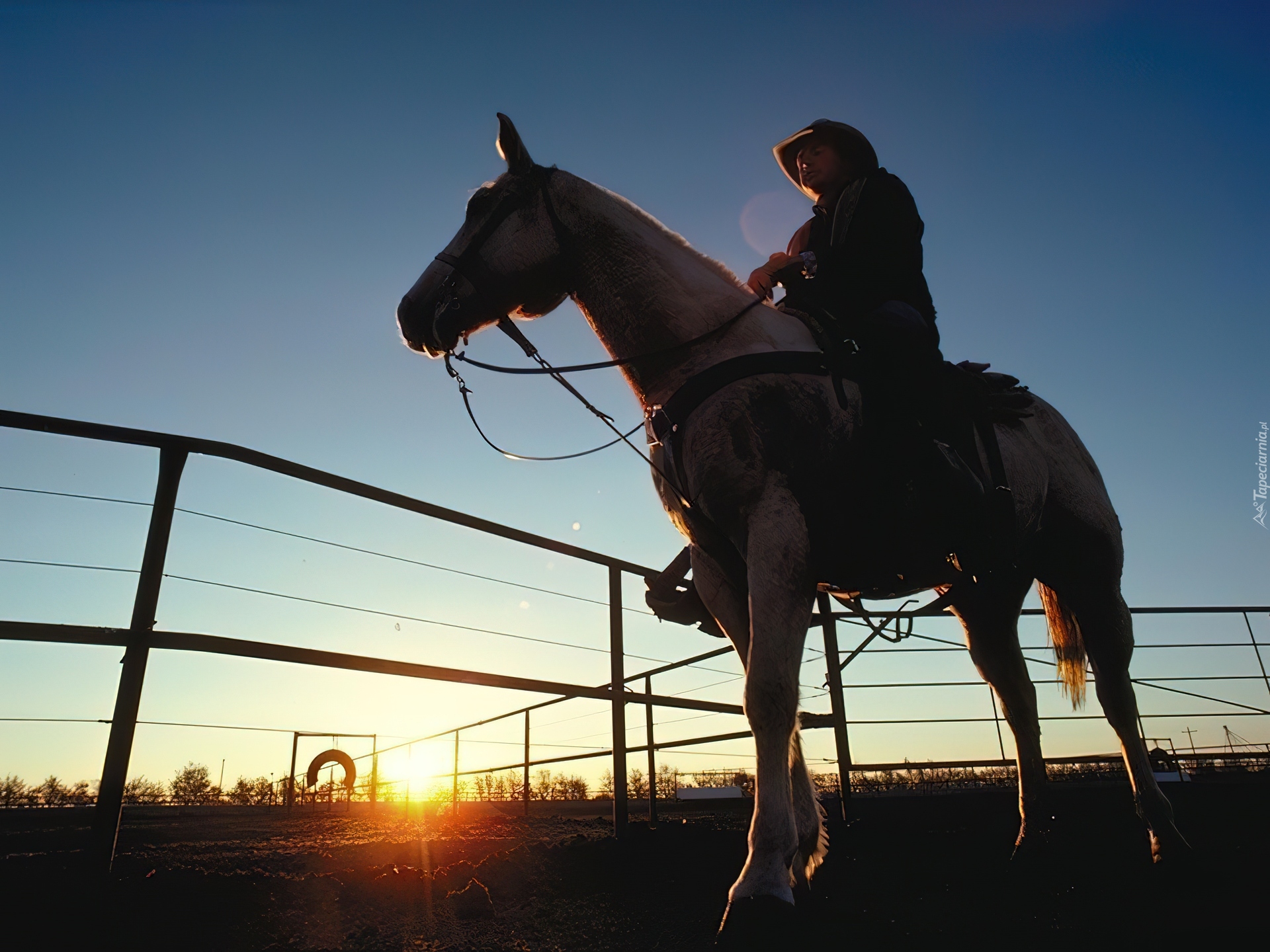 Edytor tapety: Koń, jeździec, słońce, zachód