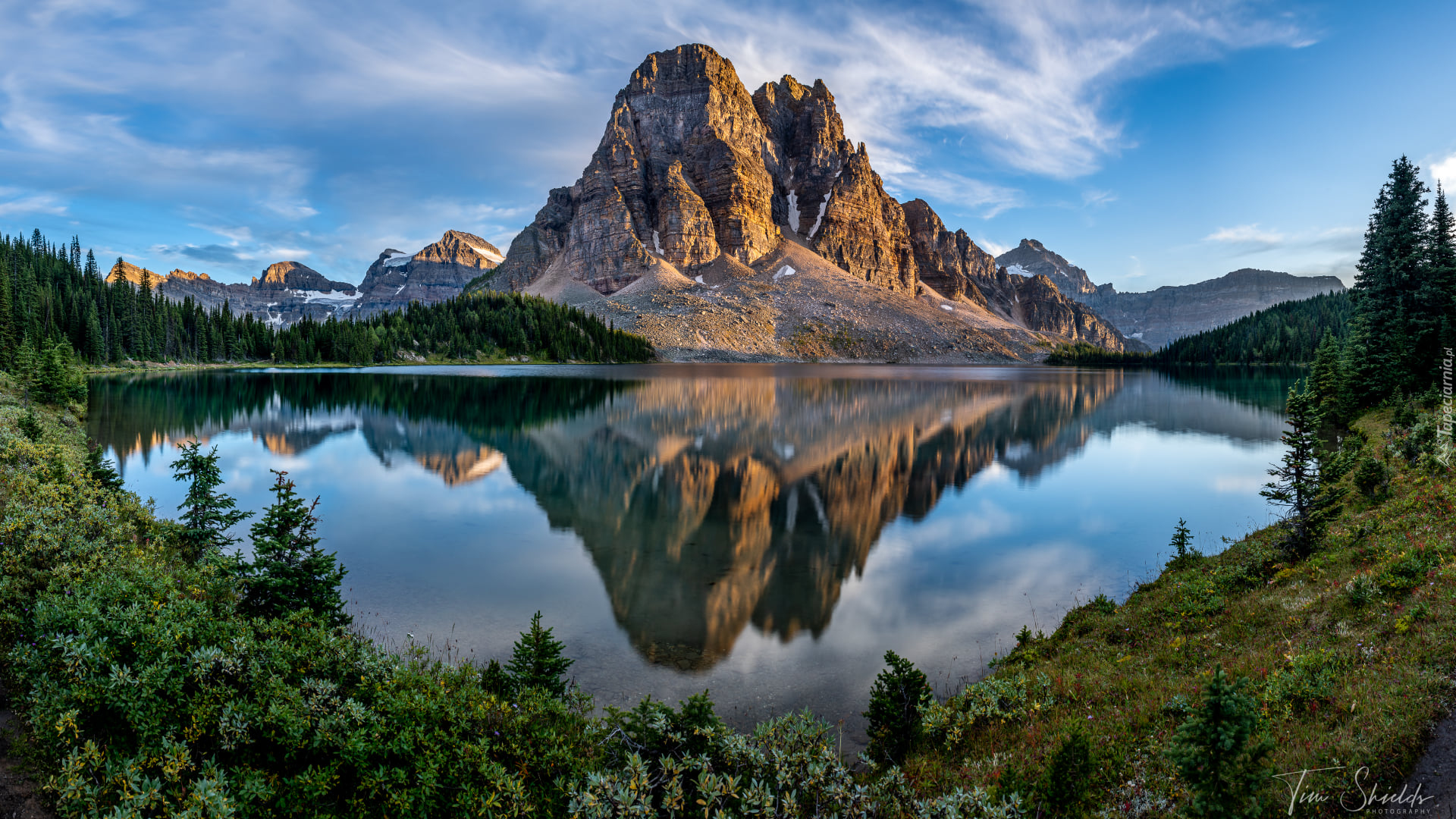 Edytor tapety: Odbicie w jeziorze masywu górskiego