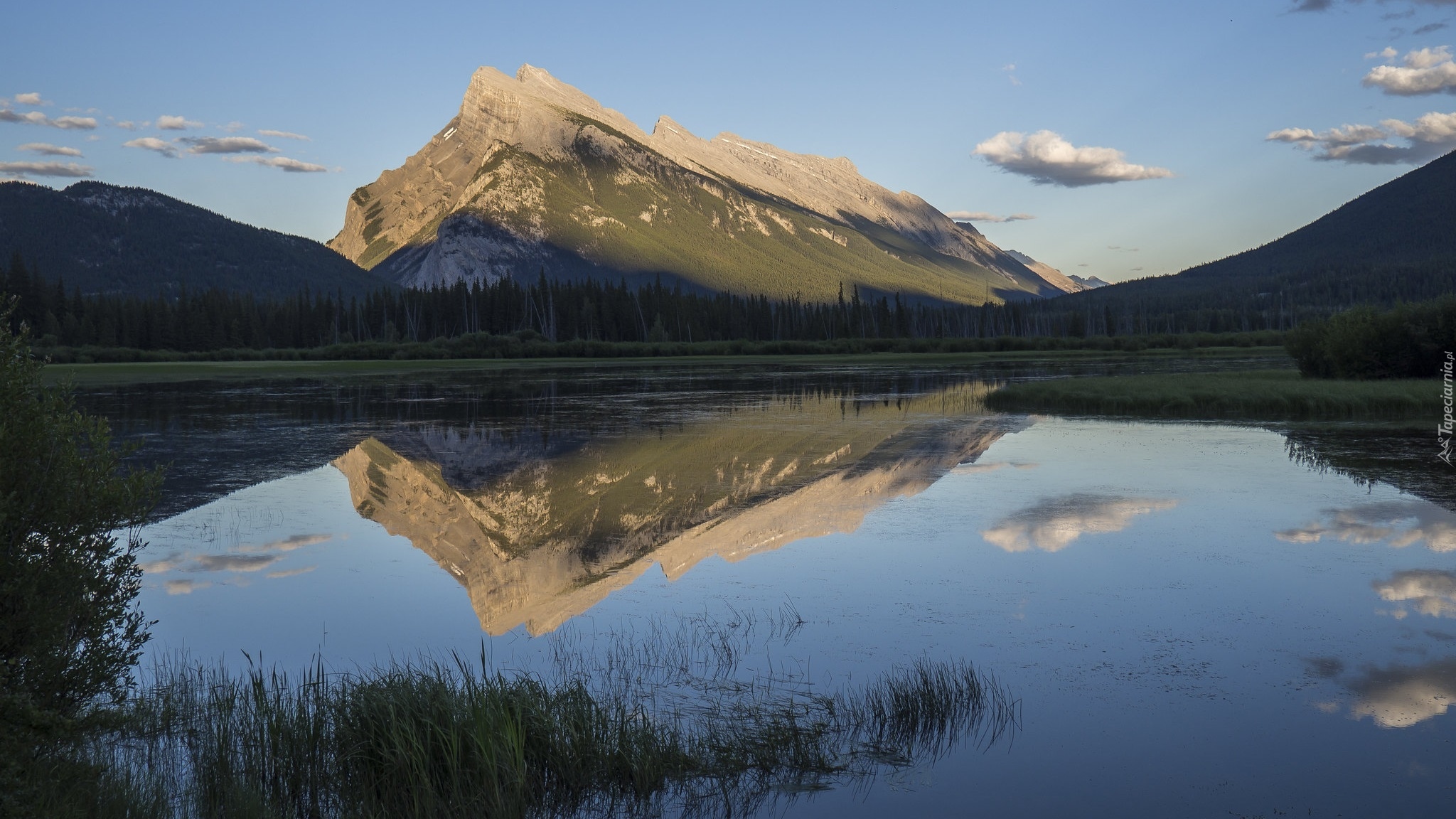 Edytor tapety: Widok z jeziora Vermillion na ośnieżony szczyt