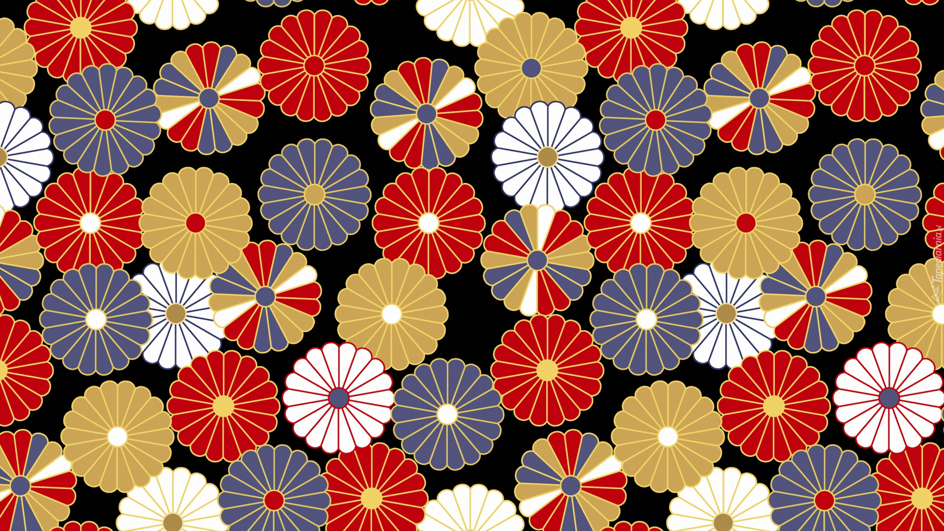 Edytor tapety: Kolorowe kwiatki na czarnym tle