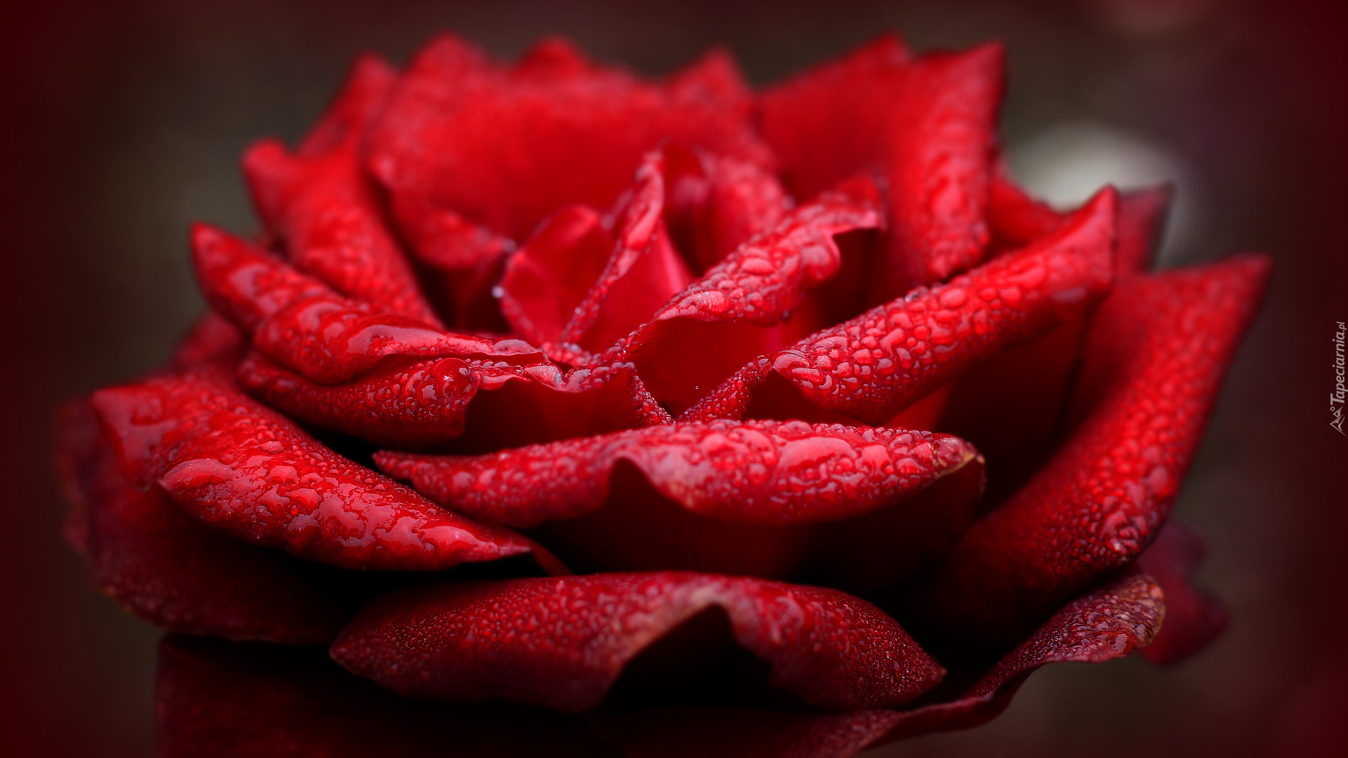 Edytor tapety: Zroszona czerwona róża w zbliżeniu