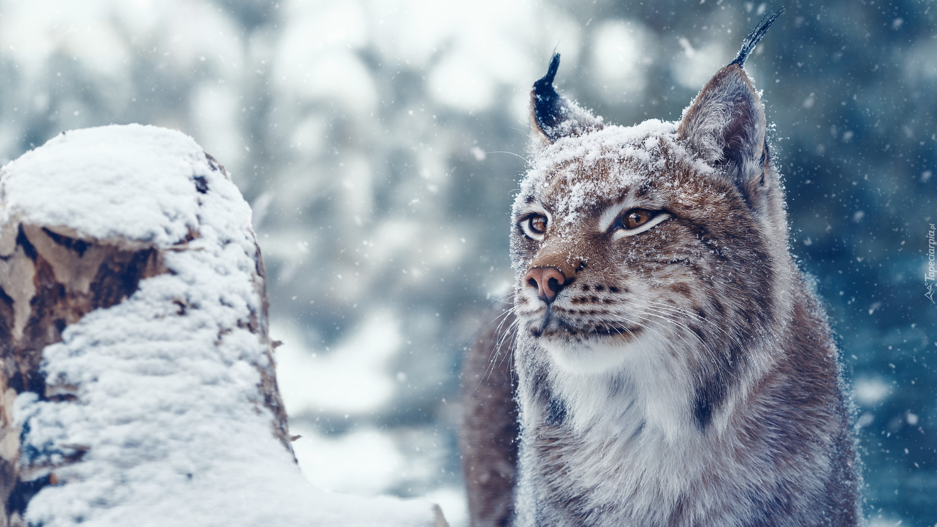 Edytor tapety: Ośnieżony ryś w padającym śniegu