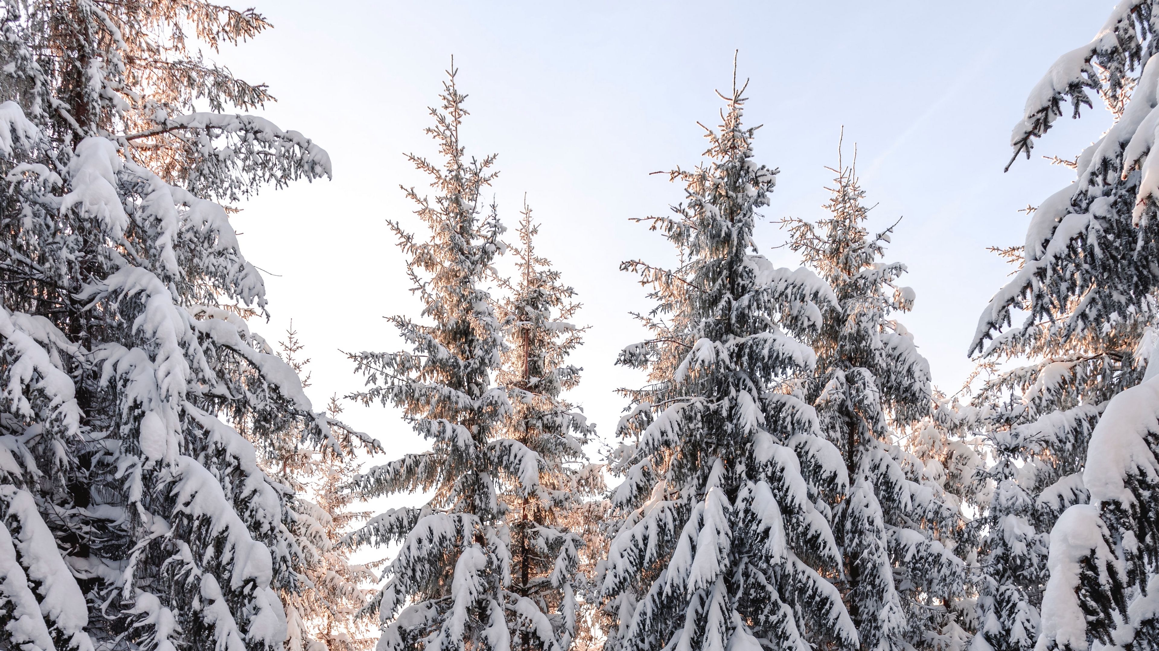 Edytor tapety: Ośnieżone świerki na tle bezchmurnego nieba