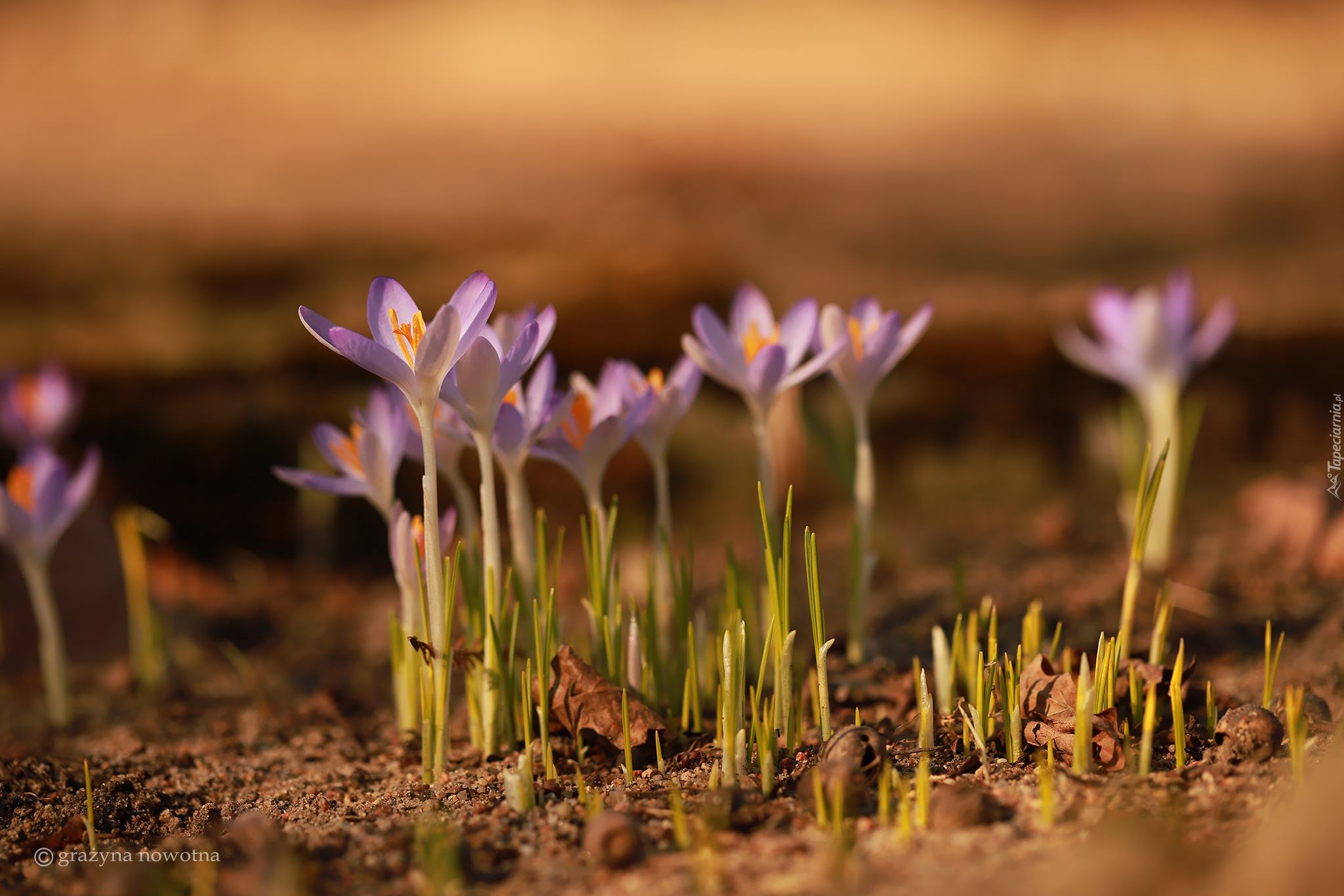 Edytor tapety: Rozświetlone liliowe krokusy na rozmytym tle