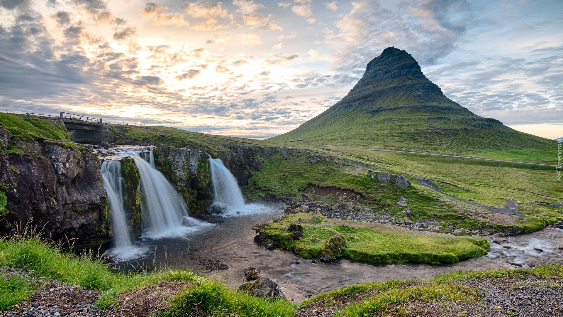 Edytor tapety: Wodospad Kirkjufellsfoss i góra Kirkjufell