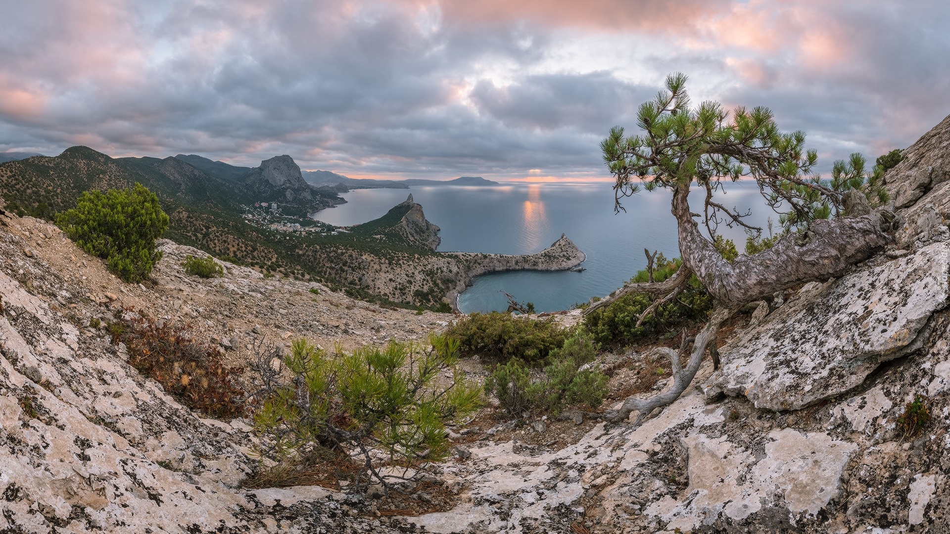 Edytor tapety: Sosna na skale z widokiem na wybrzeże Krymu