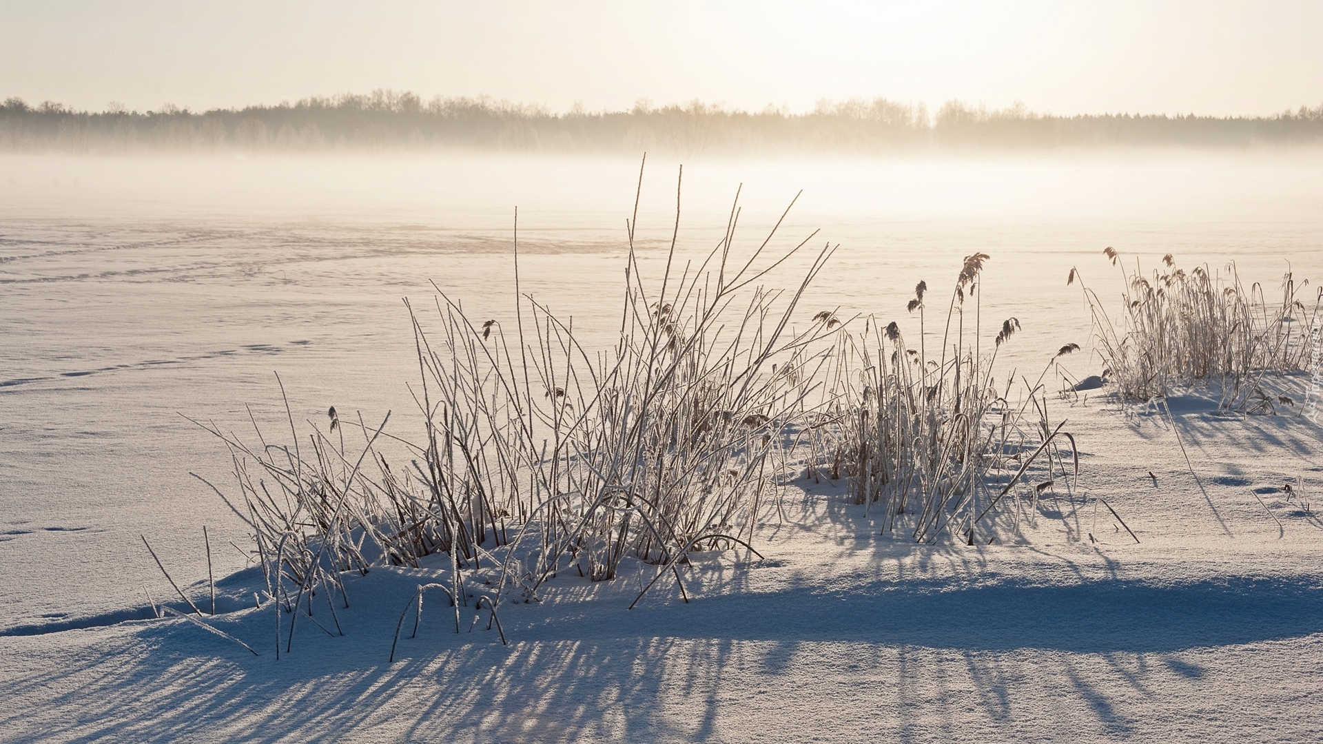 Edytor tapety: Kępki trawy na ośnieżonym polu