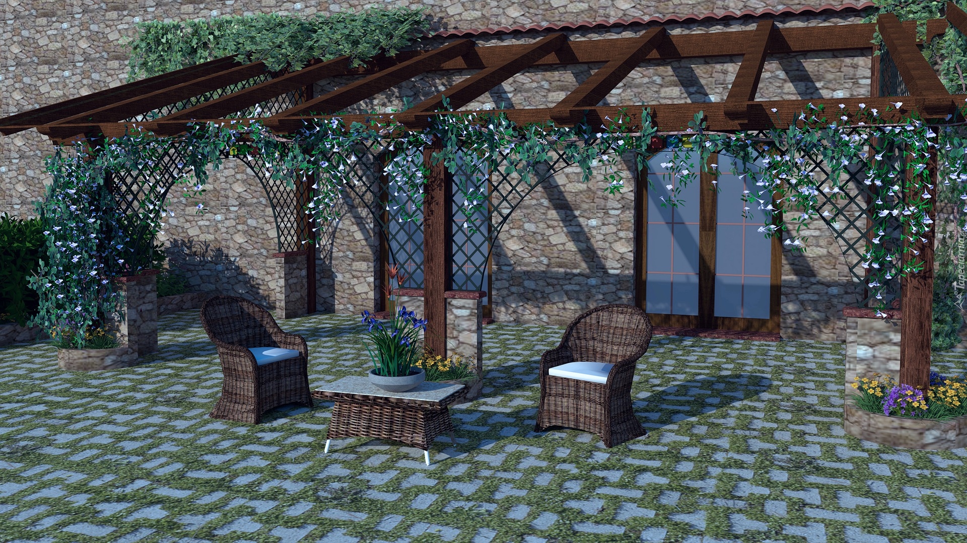Edytor tapety: Stolik i fotele pod pergolą