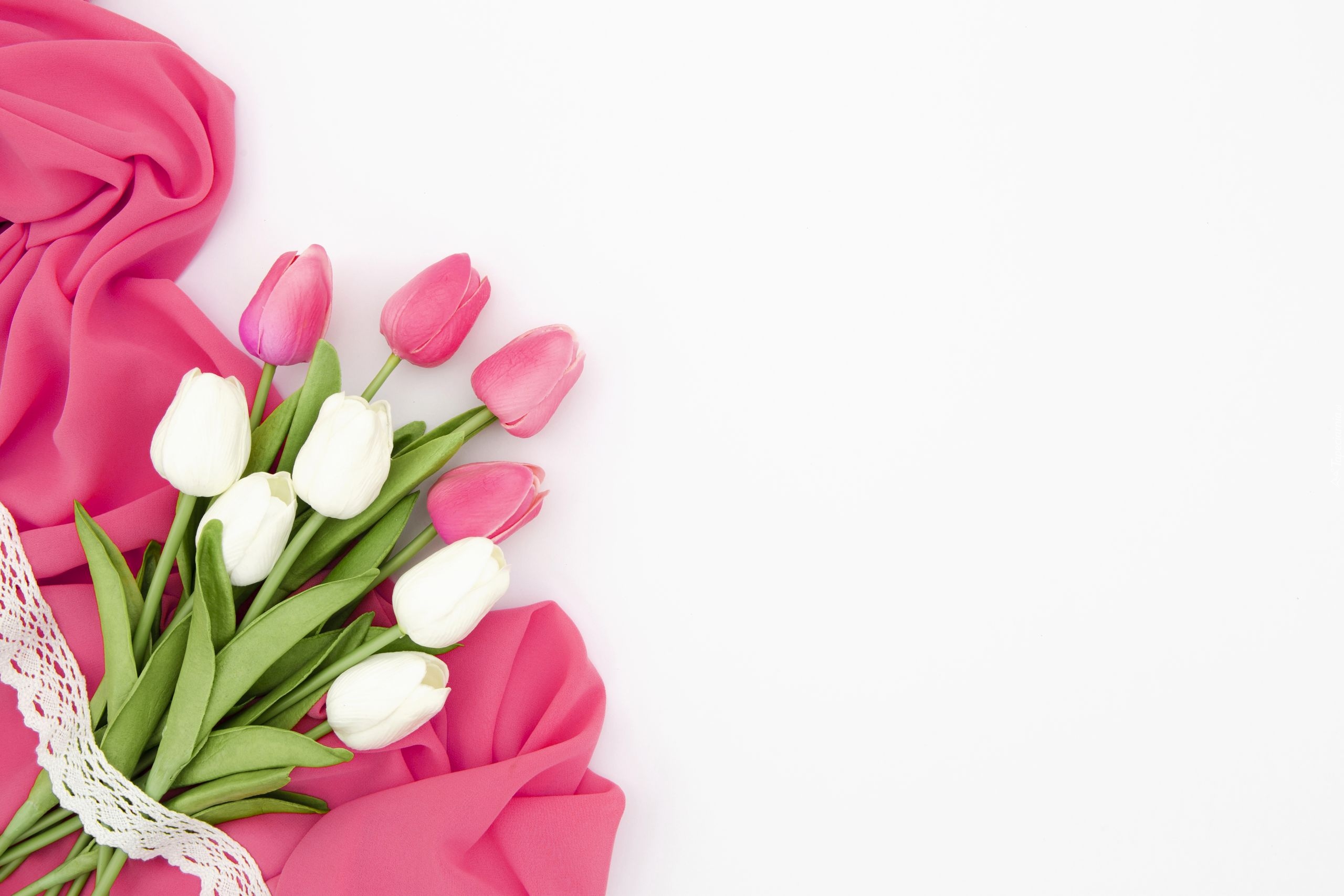 Edytor tapety: Tulipany na różowym materiale