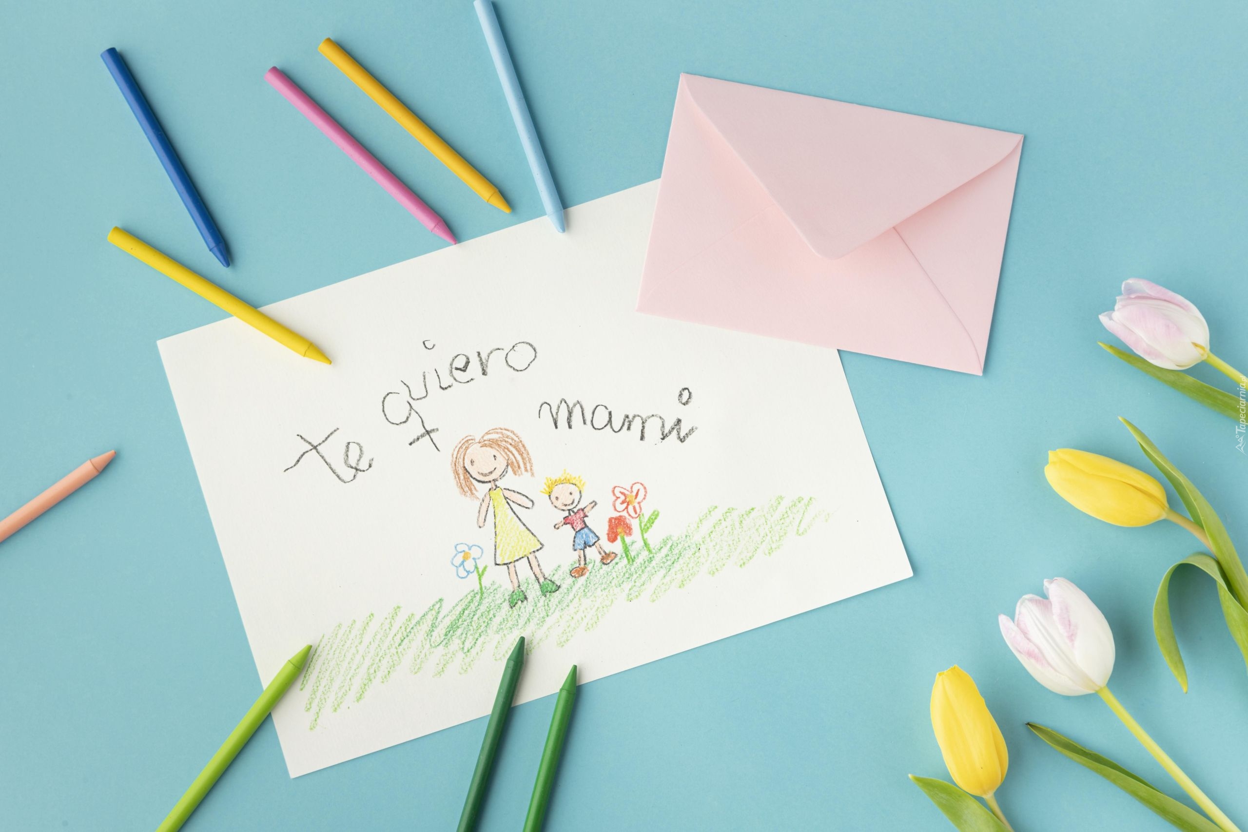 Edytor tapety: Rysunek i tulipany dla mamy