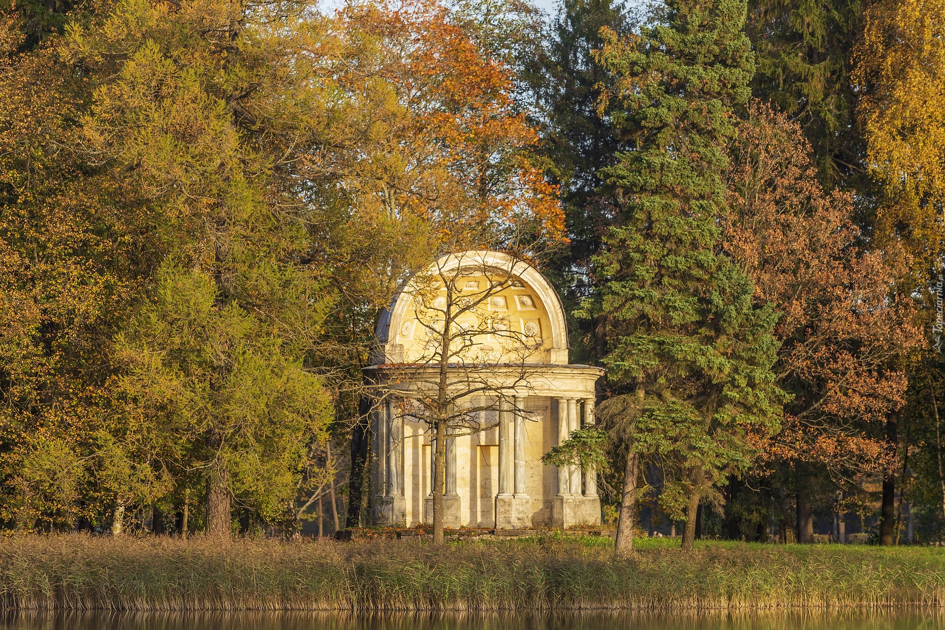 Edytor tapety: Glorieta w parku pośród drzew